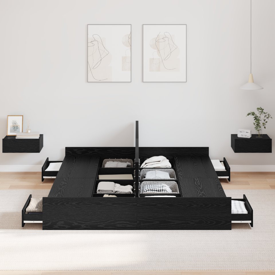 Dieses stylishe Stauraumbett ist genau das, was du für ein modernes Schlafzimmer brauchst. Es bietet sowohl praktischen Nutzen als auch tollen Stil. Der Rahmen hat ein schlichtes und sauberes Design, das perfekt zu verschiedenen Einrichtungsstilen passt. Der integrierte Stauraum ist einfach genial, um alles organisiert zu halten – perfekt für alle, die Einfachheit und Bequemlichkeit schätzen. Vielseitiges Design: Dieses rechteckige Bettgestell verbindet schickes Design mit praktischem Stauraum. Die klaren Linien und die saubere Eleganz passen super in moderne Umgebungen. Der Holzwerkstoff sorgt für einen coolen Look, der zu jedem Schlafzimmerstil passt. Integrierter Stauraum: Mit vielen Schubladen unter der Matratze ist dieses Bettgestell perfekt, um den Stauraum im Schlafzimmer clever auszunutzen. Diese Schubladen sind ideal, um Kleidung, Bettwäsche und andere wichtige Sachen zu verstauen, sodass der Platz effizient genutzt wird, ohne dass der Stil leidet. Robuste Konstruktion: Aus solidem Holzwerkstoff gefertigt ist dieses Stauraumbett stabil und langlebig. Es bietet dir eine große Stabilität für einen angenehmen Schlaf. Das Kopf- und Fußteil sorgt zusätzlich für Halt. Praktische Funktionen: Du brauchst keinen Boxspring, was die Nutzung super einfach macht. Es hat starke Latten für einen stabilen Matratzenhalt und die hochklappbare Basis verbirgt Stauraum, was die Flexibilität erhöht. Einfache Pflege: Dieses Stauraumbett zu reinigen ist ein Kinderspiel – einfach schnell mit einem feuchten Tuch abwischen. Es ist pflegeleicht und damit die beste Wahl für einen vollen Alltag, da es Bequemlichkeit und Langlebigkeit kombiniert.