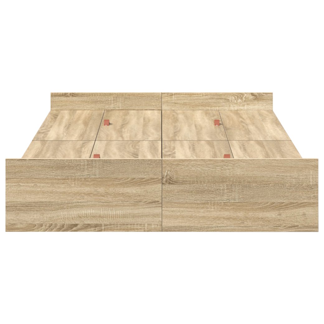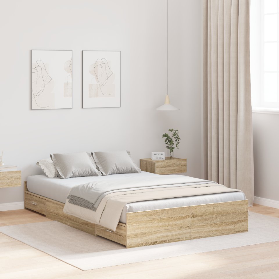 Dieses stylishe Stauraumbett ist genau das, was du für ein modernes Schlafzimmer brauchst. Es bietet sowohl praktischen Nutzen als auch tollen Stil. Der Rahmen hat ein schlichtes und sauberes Design, das perfekt zu verschiedenen Einrichtungsstilen passt. Der integrierte Stauraum ist einfach genial, um alles organisiert zu halten – perfekt für alle, die Einfachheit und Bequemlichkeit schätzen. Vielseitiges Design: Dieses rechteckige Bettgestell verbindet schickes Design mit praktischem Stauraum. Die klaren Linien und die saubere Eleganz passen super in moderne Umgebungen. Der Holzwerkstoff sorgt für einen coolen Look, der zu jedem Schlafzimmerstil passt. Integrierter Stauraum: Mit vielen Schubladen unter der Matratze ist dieses Bettgestell perfekt, um den Stauraum im Schlafzimmer clever auszunutzen. Diese Schubladen sind ideal, um Kleidung, Bettwäsche und andere wichtige Sachen zu verstauen, sodass der Platz effizient genutzt wird, ohne dass der Stil leidet. Robuste Konstruktion: Aus solidem Holzwerkstoff gefertigt ist dieses Stauraumbett stabil und langlebig. Es bietet dir eine große Stabilität für einen angenehmen Schlaf. Das Kopf- und Fußteil sorgt zusätzlich für Halt. Praktische Funktionen: Du brauchst keinen Boxspring, was die Nutzung super einfach macht. Es hat starke Latten für einen stabilen Matratzenhalt und die hochklappbare Basis verbirgt Stauraum, was die Flexibilität erhöht. Einfache Pflege: Dieses Stauraumbett zu reinigen ist ein Kinderspiel – einfach schnell mit einem feuchten Tuch abwischen. Es ist pflegeleicht und damit die beste Wahl für einen vollen Alltag, da es Bequemlichkeit und Langlebigkeit kombiniert.