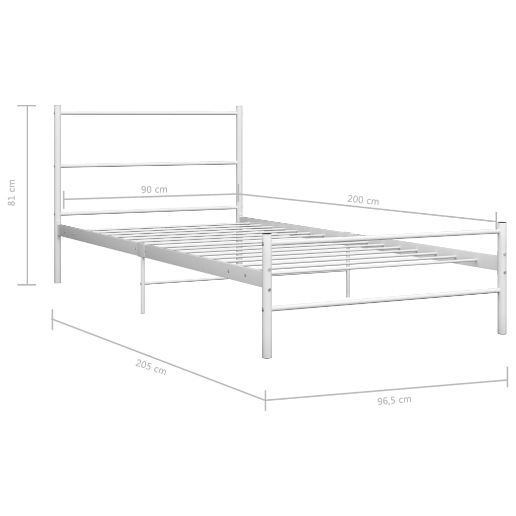 Dieses Metallbett für 1 Person mit schlichtem, aber zeitlosem Design verfügt über eine solide Konstruktion. Aus hochwertigem Metall gefertigt, ist das Bett robust und belastbar. Der pulverbeschichtete Bettrahmen ist kratz- und stoßfest. Die Metall-Latten sind leicht flexibel und bilden einen bequemen Lattenrost. Dieses Einzelbett ist für eine Matratze von 90 x 200 cm ausgelegt. Bitte beachten Sie, dass im Lieferumfang nur ein Bettrahmen enthalten ist. Eine Matratze ist nicht im Lieferumfang enthalten. In unserem Shop finden Sie die passenden Matratzen.