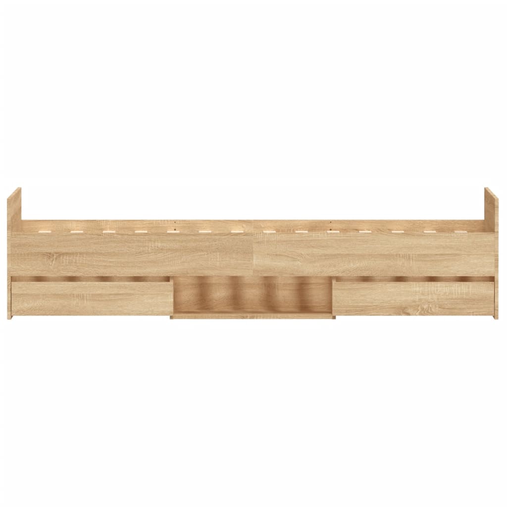 Mit diesem Bett wirst du einen besseren, erholsameren Schlaf genießen! Er ist eine einladende Ergänzung für jedes Schlafzimmer. Langlebiges Material: Holzwerkstoff ist ein Material von außergewöhnlicher Qualität mit glatter Oberfläche, das sich durch Festigkeit, Stabilität und Feuchtigkeitsbeständigkeit auszeichnet.Praktisches Kopf- und Fußteil: Das Kopf- und Fußteil des Bettgestells halten die Matratze an ihrem Platz. Das Kopfteil bietet zudem eine ausgezeichnete Rückenunterstützung beim Lesen oder Fernsehen.Reichlich Stauraum: Dieses Gästebett verfügt über vier Schubladen und Ablagen, die reichlich Stauraum für Kleidung, Socken, Spielzeug, Kissen usw. bieten.Robuste Latten: Die Sperrholzlatten sorgen für eine gute Gewichtsverteilung und auch dafür, dass die Matratze bei jeder Bewegung Ihres Körpers während des Schlafes an Ort und Stelle bleibt. Gut zu wissen:Bei diesem Bett ist keine Matratze im Lieferumfang enthalten. Wir bieten jedoch eine große Auswahl an Matratzen an. Du kannst in unserem Shop nach einer passenden Matratze suchen.