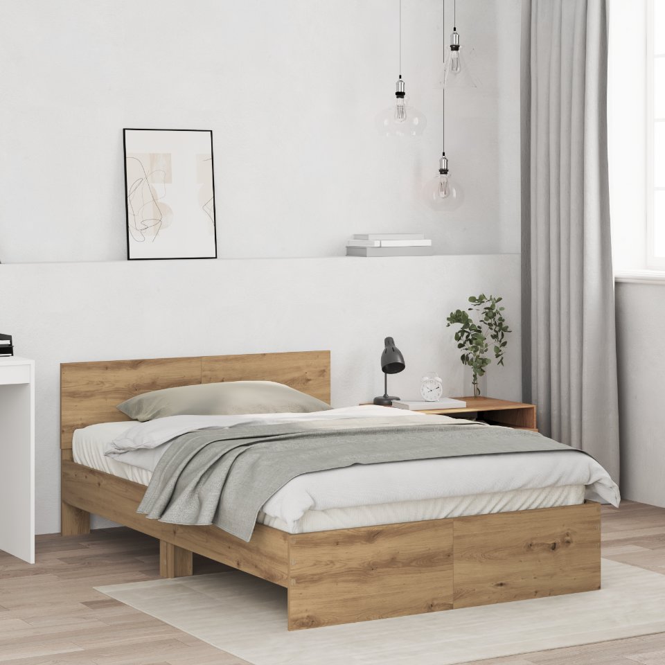 Dieses rustikale Bettgestell ist aus massivem Holz und dreht sich alles um Komfort und Entspannung. Es verleiht deinem Schlafbereich einen stylischen Touch. Das massiven Holz und das schöne rustikale Design schaffen die perfekte Grundlage für ein gemütliches Schlafzimmer, das gleichzeitig bequem bleibt. Dieses Bett ist solide und stabil, aus strapazierfähigem Holz gefertigt, das dir jahrelang zuverlässige Unterstützung und Komfort bietet. Der rustikale Stil und die matte Oberfläche betonen die natürliche Schönheit deines Raumes und schaffen eine warme und einladende Atmosphäre, die zu jeder Einrichtung passt. Die Pflege ist super einfach; ein schneller Wisch mit einem trockenen Tuch genügt, um es in top Zustand zu halten, sodass du entspannen kannst, anstatt dir über die Reinigung Gedanken zu machen. Es ist für eine Person gedacht, was es perfekt für kleinere Schlafzimmer oder Gästezimmer macht. Die glatte Textur und die sanfte Farbe geben ihm einen klassischen Look, der nicht aufdringlich ist und garantiert gut zu deiner vorhandenen Einrichtung passt.