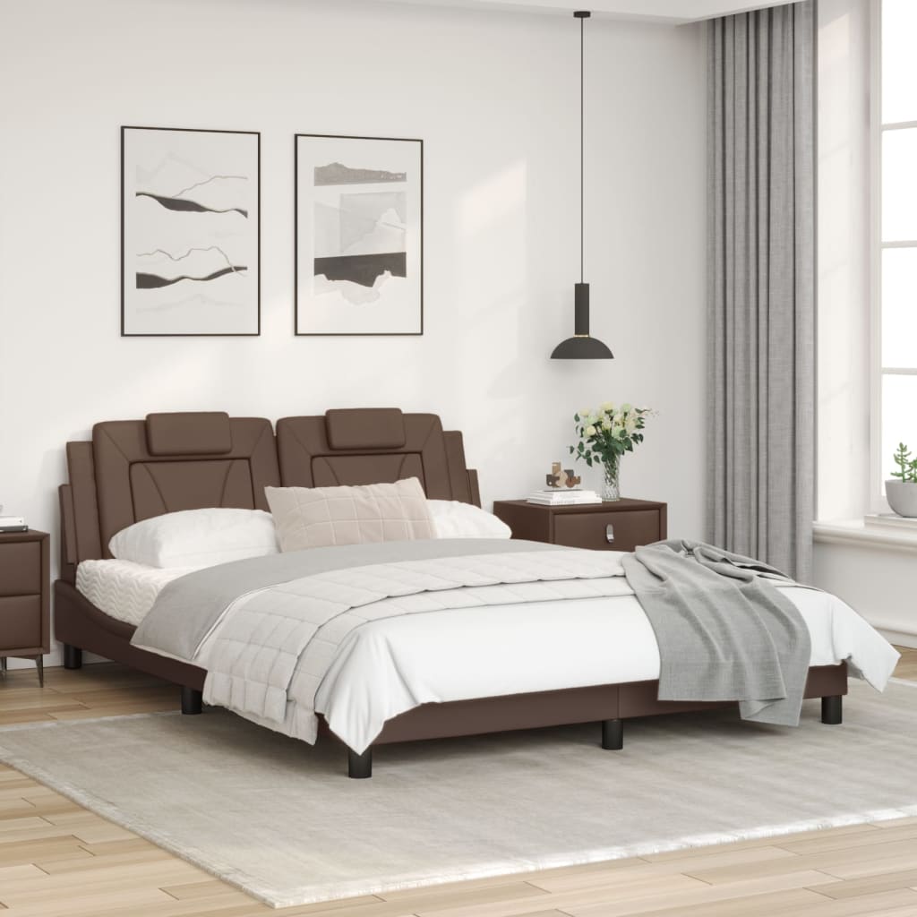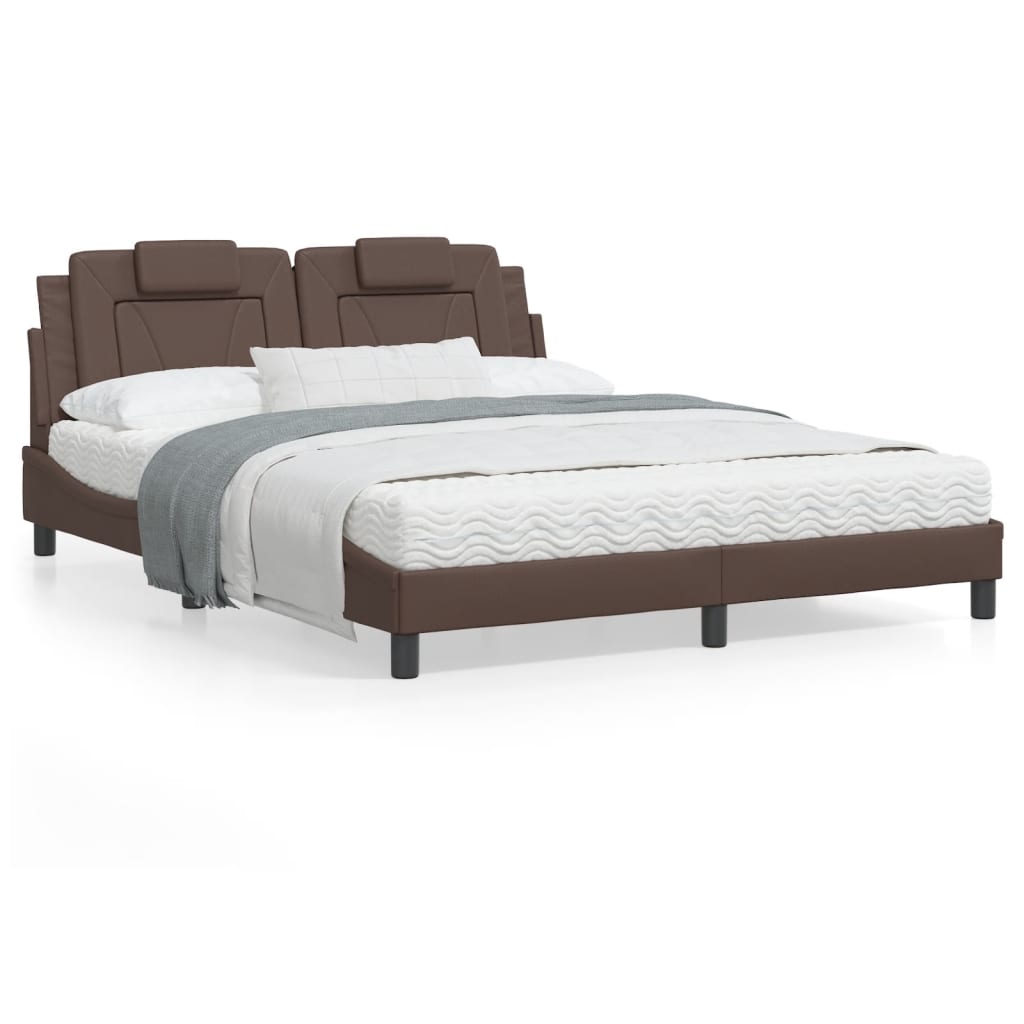 Mit diesem Bettgestell mit Kopfteil genießt du einen besseren, erholsameren Schlaf! Es ist eine angenehme Bereicherung für jedes Schlafzimmer. Langlebiges Kunstleder: Hochwertiges Kunstleder ist ein äußerst langlebiges Material. Es ist schmutzabweisend und lässt sich mit einem feuchten Tuch einfach reinigen. Durch die glatte Oberfläche weist es die Schönheit von Echtleder und einen luxuriösen Look auf.Sperrholzlatten: Die Sperrholzlatten sorgen für eine gute Gewichtsverteilung und auch dafür, dass die Matratze bei jeder Bewegung deines Körpers während des Schlafes an Ort und Stelle bleibt.Ausgezeichnete Unterstützung: Das Kopfteil-Kissen ist mit Schaumstoff gefüllt und fühlt sich daher extra weich und komfortabel an. Es bietet eine ausgezeichnete Rückenunterstützung beim Sitzen im Bett oder Fernsehen.Wellenförmiges Seitendesign: Das stilvolle und raffinierte Design in Wellenform verleiht deiner Einrichtung eine moderne und elegante Note und macht das Bettgestell zum Mittelpunkt deines Schlafzimmers. Gut zu wissen:Bei diesem Bett ist keine Matratze im Lieferumfang enthalten. Wir bieten jedoch eine große Auswahl an Matratzen an. Du kannst in unserem Shop nach einer passenden Matratze suchen.