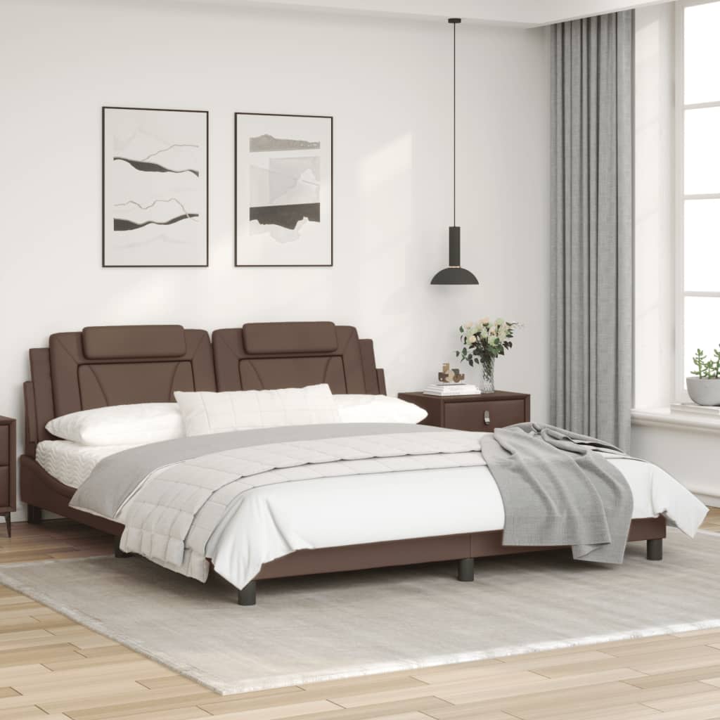 Mit diesem Bettgestell mit Kopfteil genießt du einen besseren, erholsameren Schlaf! Es ist eine angenehme Bereicherung für jedes Schlafzimmer. Langlebiges Kunstleder: Hochwertiges Kunstleder ist ein äußerst langlebiges Material. Es ist schmutzabweisend und lässt sich mit einem feuchten Tuch einfach reinigen. Durch die glatte Oberfläche weist es die Schönheit von Echtleder und einen luxuriösen Look auf.Sperrholzlatten: Die Sperrholzlatten sorgen für eine gute Gewichtsverteilung und auch dafür, dass die Matratze bei jeder Bewegung deines Körpers während des Schlafes an Ort und Stelle bleibt.Ausgezeichnete Unterstützung: Das Kopfteil-Kissen ist mit Schaumstoff gefüllt und fühlt sich daher extra weich und komfortabel an. Es bietet eine ausgezeichnete Rückenunterstützung beim Sitzen im Bett oder Fernsehen.Wellenförmiges Seitendesign: Das stilvolle und raffinierte Design in Wellenform verleiht deiner Einrichtung eine moderne und elegante Note und macht das Bettgestell zum Mittelpunkt deines Schlafzimmers. Gut zu wissen:Bei diesem Bett ist keine Matratze im Lieferumfang enthalten. Wir bieten jedoch eine große Auswahl an Matratzen an. Du kannst in unserem Shop nach einer passenden Matratze suchen.