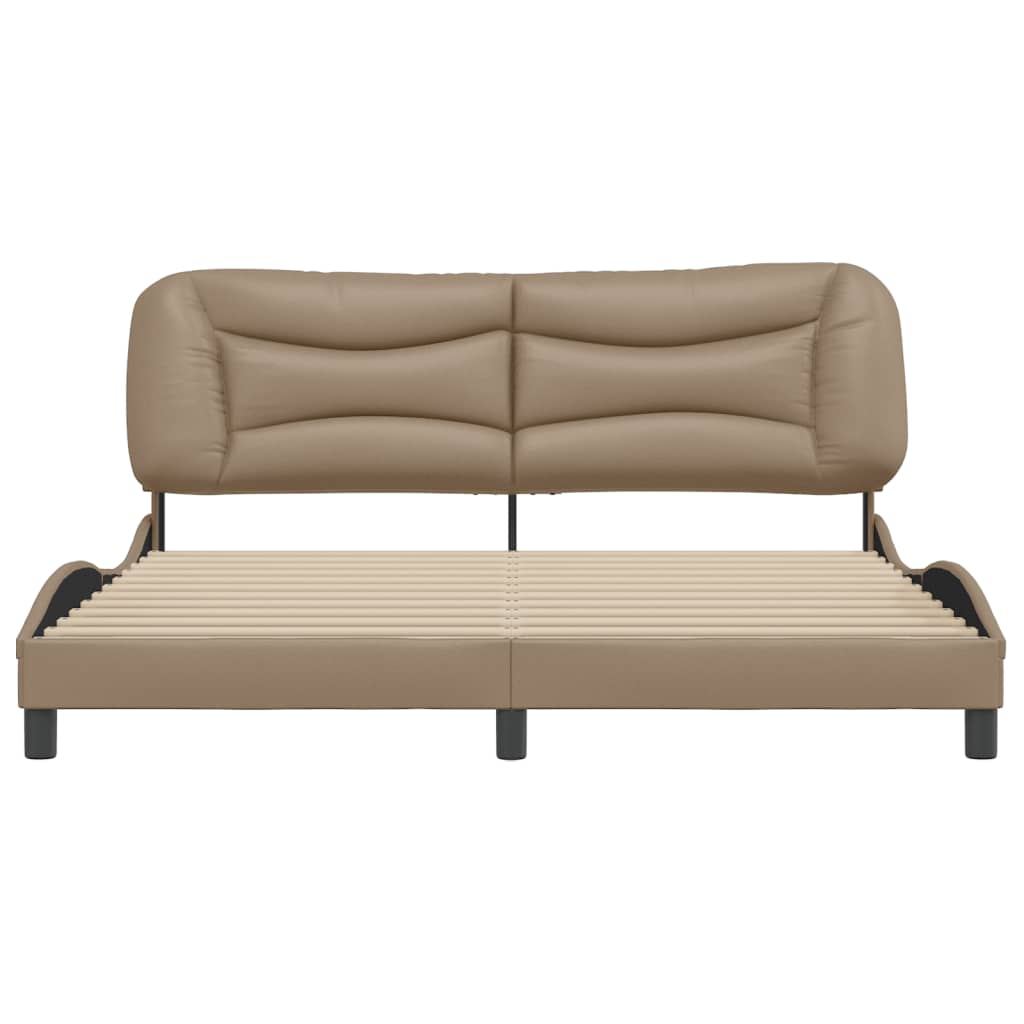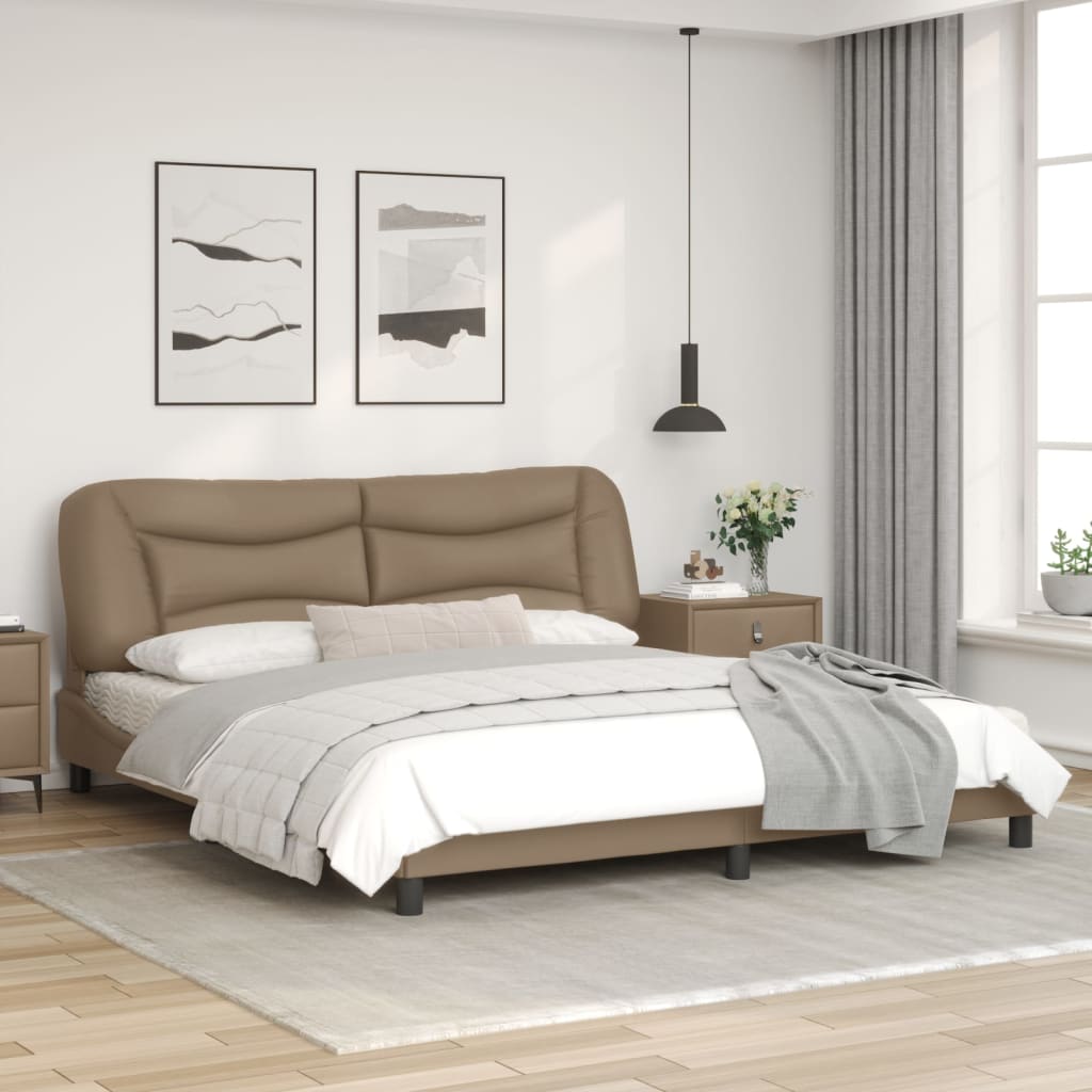 Mit diesem Bettgestell mit Kopfteil genießt du einen besseren, erholsameren Schlaf! Es ist eine angenehme Bereicherung für jedes Schlafzimmer. Langlebiges Kunstleder: Hochwertiges Kunstleder ist ein äußerst langlebiges Material. Es ist schmutzabweisend und lässt sich mit einem feuchten Tuch einfach reinigen. Durch die glatte Oberfläche weist es die Schönheit von Echtleder und einen luxuriösen Look auf.Sperrholzlatten: Die Sperrholzlatten sorgen für eine gute Gewichtsverteilung und auch dafür, dass die Matratze bei jeder Bewegung deines Körpers während des Schlafes an Ort und Stelle bleibt.Exzellenter Halt: Das Kopfteil Kissen ist mit PP-Fasern für ultraweichen und optimalen Komfort gefüllt und bietet dir eine hervorragende Rückenlehne, während du im Bett sitzt, liest oder fernsiehst.Wellenförmiges Seitendesign: Das stilvolle und raffinierte Design in Wellenform verleiht deiner Einrichtung eine moderne und elegante Note und macht das Bettgestell zum Mittelpunkt deines Schlafzimmers. Gut zu wissen:Bei diesem Bett ist keine Matratze im Lieferumfang enthalten. Wir bieten jedoch eine große Auswahl an Matratzen an. Du kannst in unserem Shop nach einer passenden Matratze suchen.
