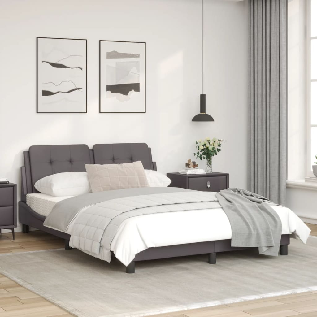 Mit diesem Bettgestell mit Kopfteil genießt du einen besseren, erholsameren Schlaf! Es ist eine angenehme Bereicherung für jedes Schlafzimmer. Langlebiges Kunstleder: Hochwertiges Kunstleder ist ein äußerst langlebiges Material. Es ist schmutzabweisend und lässt sich mit einem feuchten Tuch einfach reinigen. Durch die glatte Oberfläche weist es die Schönheit von Echtleder und einen luxuriösen Look auf.Sperrholzlatten: Die Sperrholzlatten sorgen für eine gute Gewichtsverteilung und auch dafür, dass die Matratze bei jeder Bewegung deines Körpers während des Schlafes an Ort und Stelle bleibt.Ausgezeichnete Unterstützung: Das Kopfteil-Kissen ist mit Schaumstoff gefüllt und fühlt sich daher extra weich und komfortabel an. Es bietet eine ausgezeichnete Rückenunterstützung beim Sitzen im Bett oder Fernsehen.Praktisches Design: Das Kopfteil-Kissen verfügt über einen Reißverschluss und lässt sich dadurch einfach anbringen.Wellenförmiges Seitendesign: Das stilvolle und raffinierte Design in Wellenform verleiht deiner Einrichtung eine moderne und elegante Note und macht das Bettgestell zum Mittelpunkt deines Schlafzimmers. Gut zu wissen:Bei diesem Bett ist keine Matratze im Lieferumfang enthalten. Wir bieten jedoch eine große Auswahl an Matratzen an. Du kannst in unserem Shop nach einer passenden Matratze suchen.