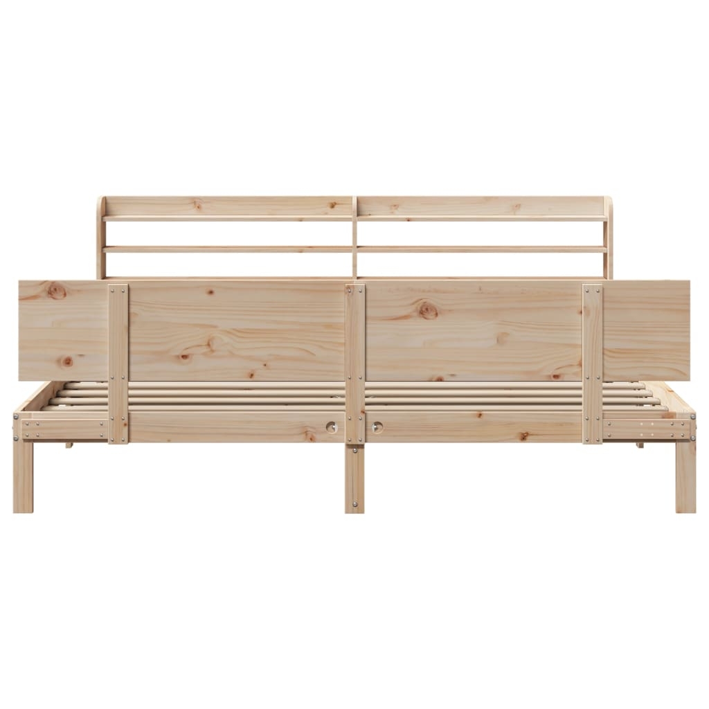 Genießen Sie einen erholsamen Schlaf in diesem Holzbett! Es wird eine praktische und dekorative Ergänzung zu Ihrem Interieur sein. Massives Kiefernholz: Massives Kiefernholz ist ein wunderschönes Naturmaterial. Kiefernholz weist eine gerade Maserung auf und die Aststellen verleihen dem Material seine charakteristische, rustikale Optik.Sperrholzlatten: Die Sperrholzlatten sorgen für eine gute Gewichtsverteilung sowie einen guten Halt der Matratze, während ihre Atmungsaktivität nicht beeinträchtigt wird.Reichlich Stauraum: Das elegante Kopfteil des Bettes verfügt über zwei praktische Ablagen, die reichlich Stauraum bieten, um wichtige Sachen nachts griffbereit zu halten.Freistehend: Das freistehende Kopfteil lässt sich mühelos anbringen und bei Bedarf umstellen, ohne eine Befestigung an der Wand zu erfordern. Gut zu wissen: Bei diesem Bett ist keine Matratze im Lieferumfang enthalten. Wir bieten jedoch eine große Auswahl an Matratzen an. Du kannst in unserem Shop nach einer passenden Matratze suchen.