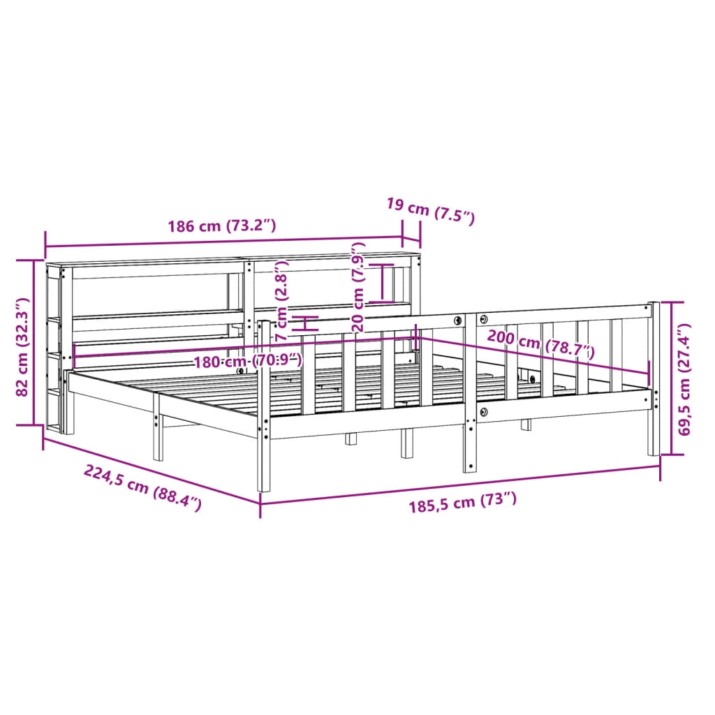 - Abmessungen des Kopfteils: 186 x 19 x 82 cm (L x B x H)