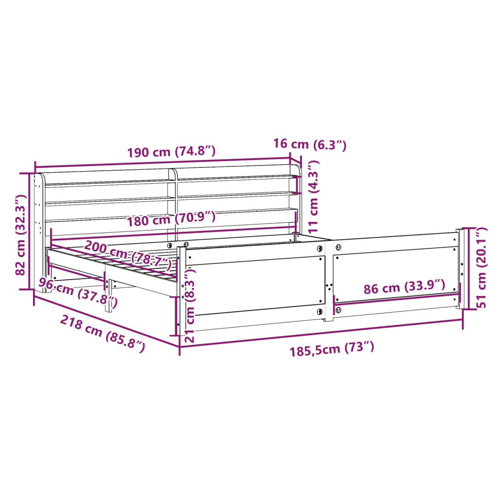 - Abmessungen des Kopfteils: 190 x 16 x 82 cm (L x B x H)