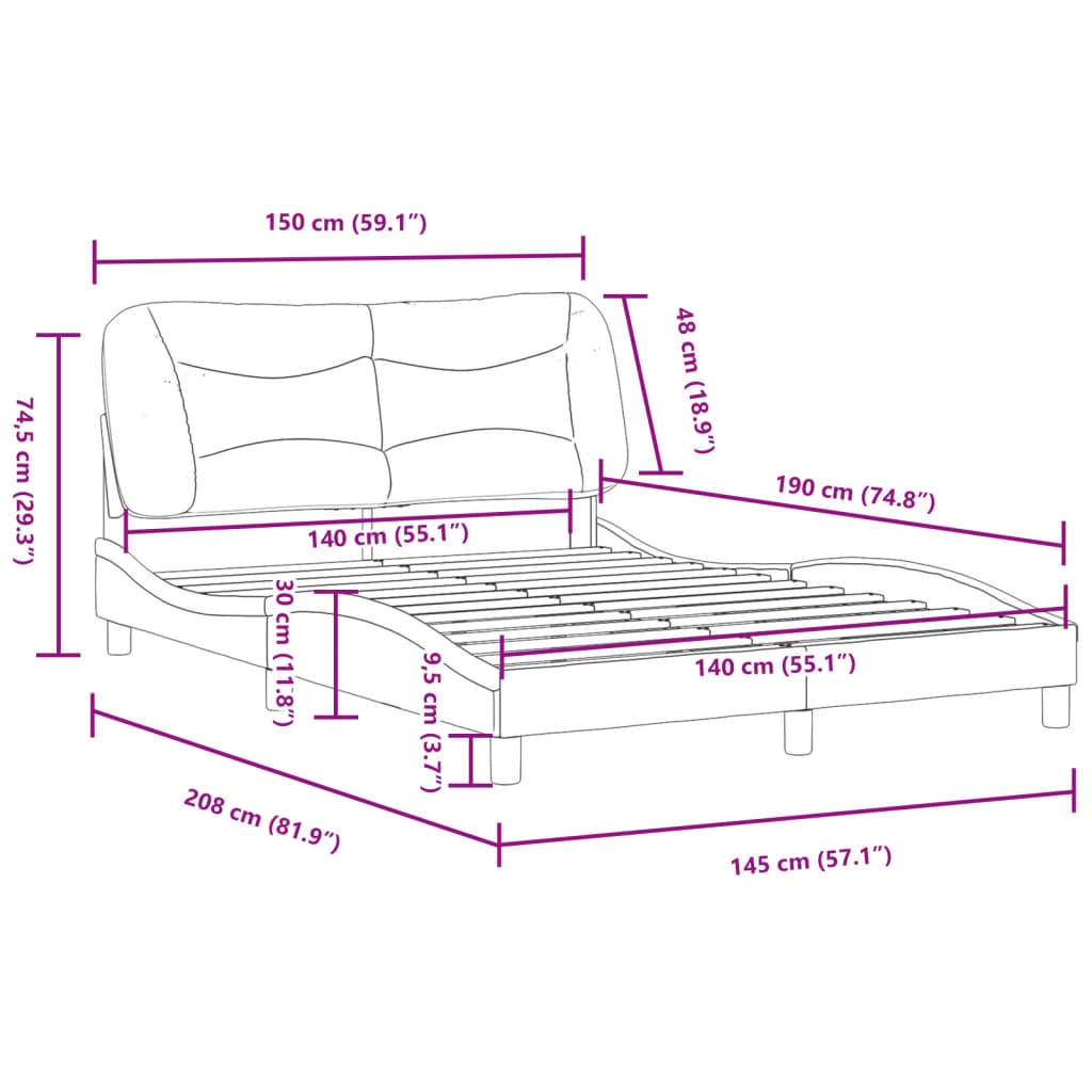 Mit diesem Bettgestell mit Kopfteil genießt du einen besseren, erholsameren Schlaf! Es ist eine angenehme Bereicherung für jedes Schlafzimmer. Langlebiges Kunstleder: Hochwertiges Kunstleder ist ein äußerst langlebiges Material. Es ist schmutzabweisend und lässt sich mit einem feuchten Tuch einfach reinigen. Durch die glatte Oberfläche weist es die Schönheit von Echtleder und einen luxuriösen Look auf.Sperrholzlatten: Die Sperrholzlatten sorgen für eine gute Gewichtsverteilung und auch dafür, dass die Matratze bei jeder Bewegung deines Körpers während des Schlafes an Ort und Stelle bleibt.Exzellenter Halt: Das Kopfteil Kissen ist mit PP-Fasern für ultraweichen und optimalen Komfort gefüllt und bietet dir eine hervorragende Rückenlehne, während du im Bett sitzt, liest oder fernsiehst.Wellenförmiges Seitendesign: Das stilvolle und raffinierte Design in Wellenform verleiht deiner Einrichtung eine moderne und elegante Note und macht das Bettgestell zum Mittelpunkt deines Schlafzimmers. Gut zu wissen:Bei diesem Bett ist keine Matratze im Lieferumfang enthalten. Wir bieten jedoch eine große Auswahl an Matratzen an. Du kannst in unserem Shop nach einer passenden Matratze suchen.