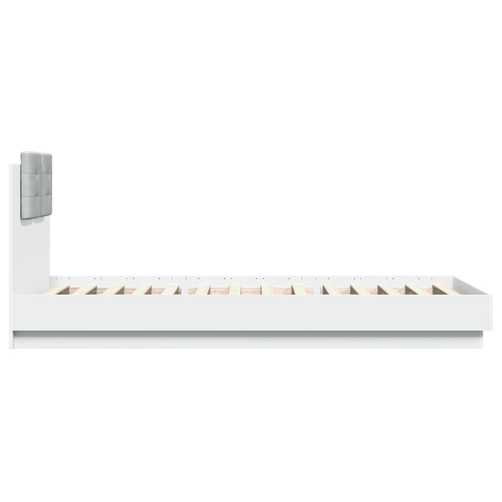 Mit diesem Bettgestell mit Kopfteil und LED-Leuchten genießt du einen besseren, erholsameren Schlaf! Es ist eine angenehme Bereicherung für jedes Schlafzimmer. Langlebiges Material: Der Holzwerkstoff ist von außergewöhnlicher Qualität mit glatter Oberfläche und zeichnet sich außerdem durch Festigkeit, Stabilität und Widerstandsfähigkeit gegen Feuchtigkeit aus.RGB-LED-Leuchten: Das Bettgestell ist mit lebendigen RGB-LED-Leuchten ausgestattet. Mit verschiedenen anpassbaren Menüs kannst du die Farbe der Lichter mühelos wechseln und sie sogar auf automatische Anpassung einstellen. Die LED-Beleuchtung unterstreicht den modernen Look des Bettgestelles und trägt zu seinem trendigen Design bei.Hervorragende Unterstützung: Das Kopfteil bietet eine ausgezeichnete Rückenstütze beim Lesen oder Fernsehen im Bett.Robuste Latten: Die Sperrholzlatten sorgen für eine gute Gewichtsverteilung und auch dafür, dass die Matratze bei jeder Bewegung Ihres Körpers während des Schlafes an Ort und Stelle bleibt. Gut zu wissen:Bei diesem Bett ist keine Matratze im Lieferumfang enthalten. Wir bieten jedoch eine große Auswahl an Matratzen an. Du kannst in unserem Shop nach einer passenden Matratze suchen.Das Produkt verfügt über einen USB-Anschluss, für den eine zertifizierte 5V-USB-Stromquelle erforderlich ist (nicht im Lieferumfang enthalten).