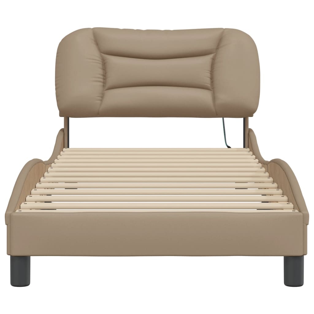 Dieses Bettgestell mit LED-Leuchten sorgt für eine erholsame Nachtruhe! Es stellt eine einladende Ergänzung zu jedem Schlafzimmer dar. Langlebiges Kunstleder: Hochwertiges Kunstleder ist ein äußerst langlebiges Material. Es ist schmutzabweisend und lässt sich mit einem feuchten Tuch einfach reinigen. Durch die glatte Oberfläche weist es die Schönheit von Echtleder und einen luxuriösen Look auf.Sperrholzlatten: Die Sperrholzlatten sorgen für eine gute Gewichtsverteilung und auch dafür, dass die Matratze bei jeder Bewegung deines Körpers während des Schlafes an Ort und Stelle bleibt.Hervorragende Unterstützung: Das Bett-Kopfteil bietet dir eine hervorragende Unterstützung, während du im Bett sitzt, um zu lesen oder fernzusehen.Bunter LED-Streifen: Die farbenfrohen LED-Leuchten bringen das Schlafzimmer zum Leuchten! Die Klettverschlüsse auf der Rückseite des Kopfteils können zur Befestigung der LED-Leuchten verwendet werden.Wellenförmiges Seitendesign: Das stilvolle und raffinierte Design in Wellenform verleiht deiner Einrichtung eine moderne und elegante Note und macht das Bettgestell zum Mittelpunkt deines Schlafzimmers. Gut zu wissen:Bei diesem Bett ist keine Matratze im Lieferumfang enthalten. Wir bieten jedoch eine große Auswahl an Matratzen an. Du kannst in unserem Shop nach einer passenden Matratze suchen.Das Produkt verfügt über einen USB-Anschluss, für den eine zertifizierte 5V-USB-Stromquelle erforderlich ist (nicht im Lieferumfang enthalten).