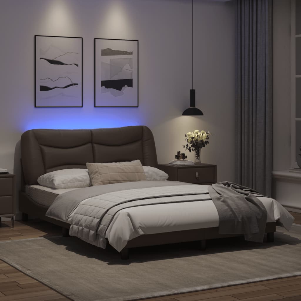 Dieses Bettgestell mit LED-Leuchten sorgt für eine erholsame Nachtruhe! Es stellt eine einladende Ergänzung zu jedem Schlafzimmer dar. Langlebiges Kunstleder: Hochwertiges Kunstleder ist ein äußerst langlebiges Material. Es ist schmutzabweisend und lässt sich mit einem feuchten Tuch einfach reinigen. Durch die glatte Oberfläche weist es die Schönheit von Echtleder und einen luxuriösen Look auf.Sperrholzlatten: Die Sperrholzlatten sorgen für eine gute Gewichtsverteilung und auch dafür, dass die Matratze bei jeder Bewegung deines Körpers während des Schlafes an Ort und Stelle bleibt.Hervorragende Unterstützung: Das Bett-Kopfteil bietet dir eine hervorragende Unterstützung, während du im Bett sitzt, um zu lesen oder fernzusehen.Bunter LED-Streifen: Die farbenfrohen LED-Leuchten bringen das Schlafzimmer zum Leuchten! Die Klettverschlüsse auf der Rückseite des Kopfteils können zur Befestigung der LED-Leuchten verwendet werden.Wellenförmiges Seitendesign: Das stilvolle und raffinierte Design in Wellenform verleiht deiner Einrichtung eine moderne und elegante Note und macht das Bettgestell zum Mittelpunkt deines Schlafzimmers. Gut zu wissen:Bei diesem Bett ist keine Matratze im Lieferumfang enthalten. Wir bieten jedoch eine große Auswahl an Matratzen an. Du kannst in unserem Shop nach einer passenden Matratze suchen.Das Produkt verfügt über einen USB-Anschluss, für den eine zertifizierte 5V-USB-Stromquelle erforderlich ist (nicht im Lieferumfang enthalten).