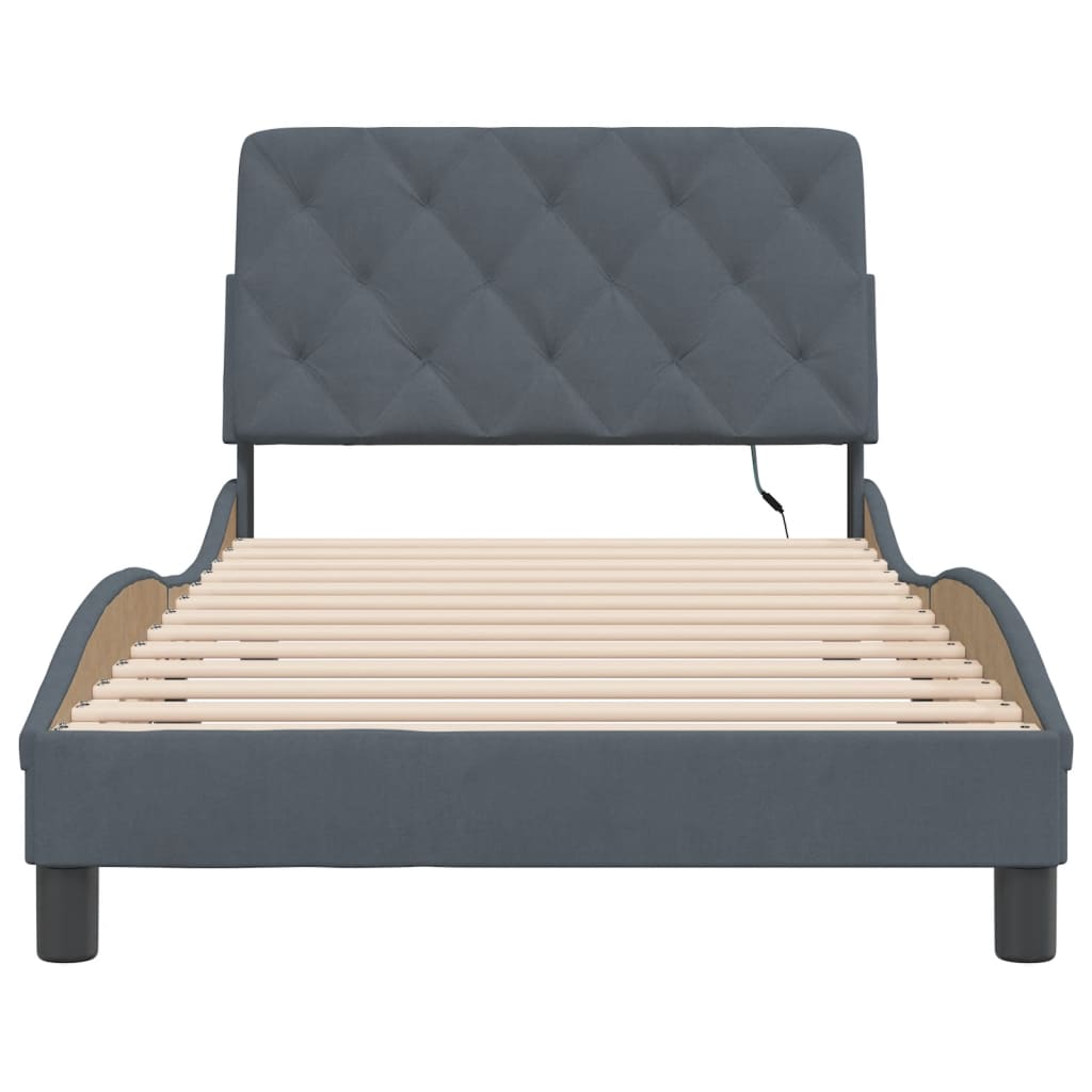 Dieses Bettgestell mit LED-Leuchten sorgt für eine erholsame Nachtruhe! Es stellt eine einladende Ergänzung zu jedem Schlafzimmer dar. Weicher Samt: Samt ist ein weicher und bequemer Stoff, der sich angenehm auf der Haut anfühlt. Sperrholzlatten: Die Sperrholzlatten sorgen für eine gute Gewichtsverteilung und auch dafür, dass die Matratze bei jeder Bewegung deines Körpers während des Schlafes an Ort und Stelle bleibt. Ausgezeichnete Unterstützung: Das Kopfteil-Kissen ist mit Schaumstoff gefüllt und fühlt sich daher extra weich und komfortabel an. Es bietet eine ausgezeichnete Rückenunterstützung beim Sitzen im Bett oder Fernsehen. Bunter LED-Streifen: Die farbenfrohen LED-Leuchten bringen das Schlafzimmer zum Leuchten! Die Klettverschlüsse auf der Rückseite des Kopfteils können zur Befestigung der LED-Leuchten verwendet werden. Wellenförmiges Seitendesign: Das stilvolle und raffinierte Design in Wellenform verleiht deiner Einrichtung eine moderne und elegante Note und macht das Bettgestell zum Mittelpunkt deines Schlafzimmers. Gut zu wissen:Bei diesem Bett ist keine Matratze im Lieferumfang enthalten. Wir bieten jedoch eine große Auswahl an Matratzen an. Du kannst in unserem Shop nach einer passenden Matratze suchen.Das Produkt verfügt über einen USB-Anschluss, für den eine zertifizierte 5V-USB-Stromquelle erforderlich ist (nicht im Lieferumfang enthalten).