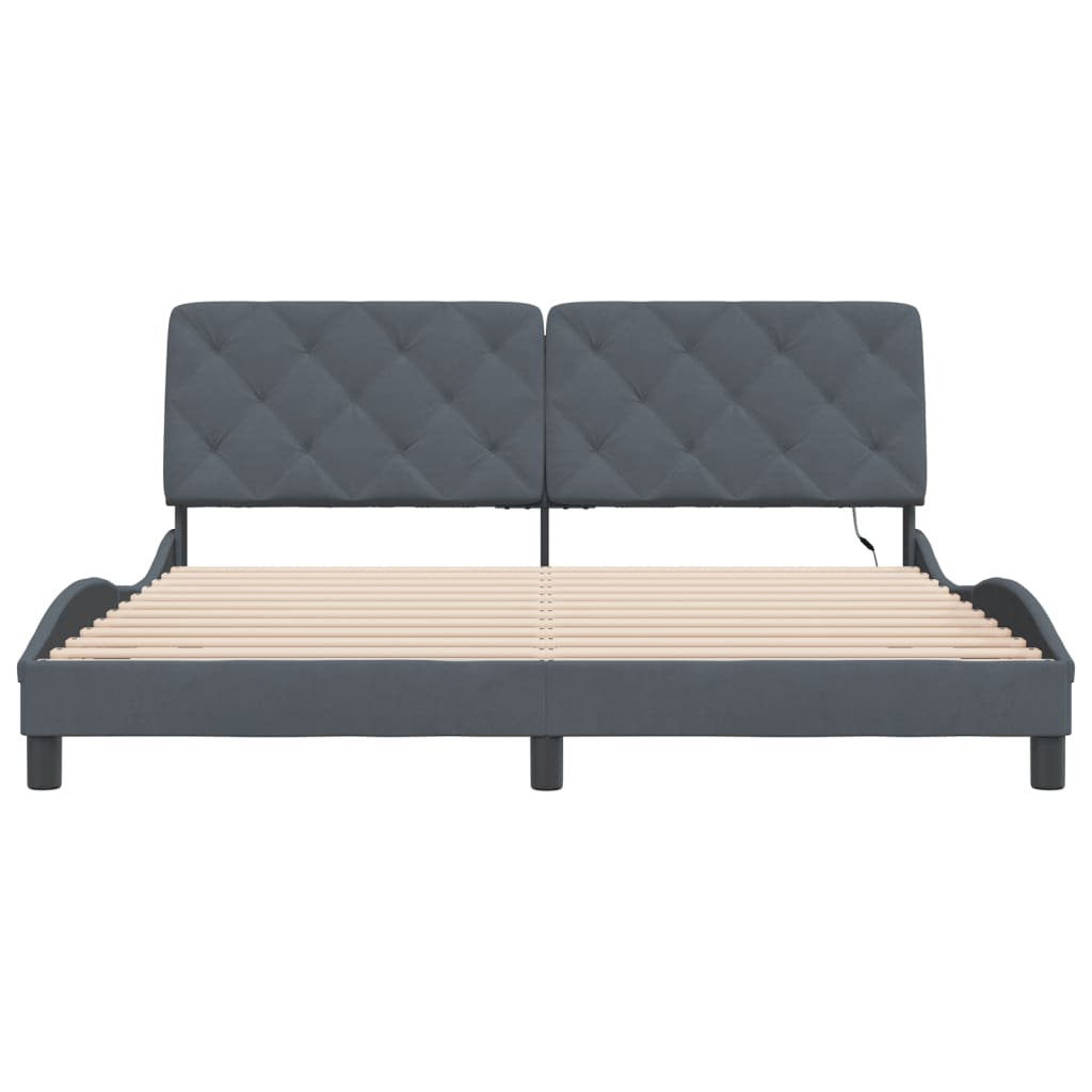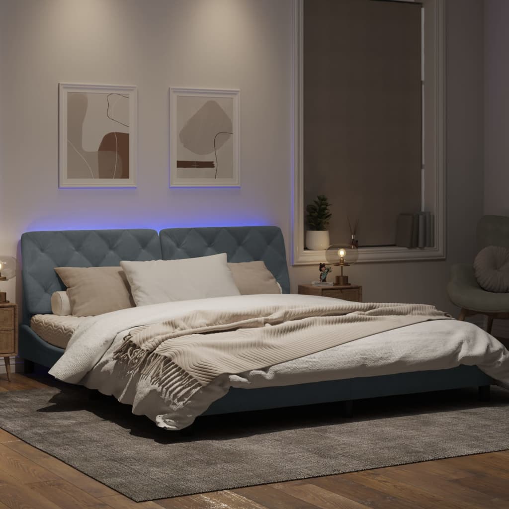 Dieses Bettgestell mit LED-Leuchten sorgt für eine erholsame Nachtruhe! Es stellt eine einladende Ergänzung zu jedem Schlafzimmer dar. Weicher Samt: Samt ist ein weicher und bequemer Stoff, der sich angenehm auf der Haut anfühlt. Sperrholzlatten: Die Sperrholzlatten sorgen für eine gute Gewichtsverteilung und auch dafür, dass die Matratze bei jeder Bewegung deines Körpers während des Schlafes an Ort und Stelle bleibt. Ausgezeichnete Unterstützung: Das Kopfteil-Kissen ist mit Schaumstoff gefüllt und fühlt sich daher extra weich und komfortabel an. Es bietet eine ausgezeichnete Rückenunterstützung beim Sitzen im Bett oder Fernsehen. Bunter LED-Streifen: Die farbenfrohen LED-Leuchten bringen das Schlafzimmer zum Leuchten! Die Klettverschlüsse auf der Rückseite des Kopfteils können zur Befestigung der LED-Leuchten verwendet werden. Wellenförmiges Seitendesign: Das stilvolle und raffinierte Design in Wellenform verleiht deiner Einrichtung eine moderne und elegante Note und macht das Bettgestell zum Mittelpunkt deines Schlafzimmers. Gut zu wissen:Bei diesem Bett ist keine Matratze im Lieferumfang enthalten. Wir bieten jedoch eine große Auswahl an Matratzen an. Du kannst in unserem Shop nach einer passenden Matratze suchen.Das Produkt verfügt über einen USB-Anschluss, für den eine zertifizierte 5V-USB-Stromquelle erforderlich ist (nicht im Lieferumfang enthalten).