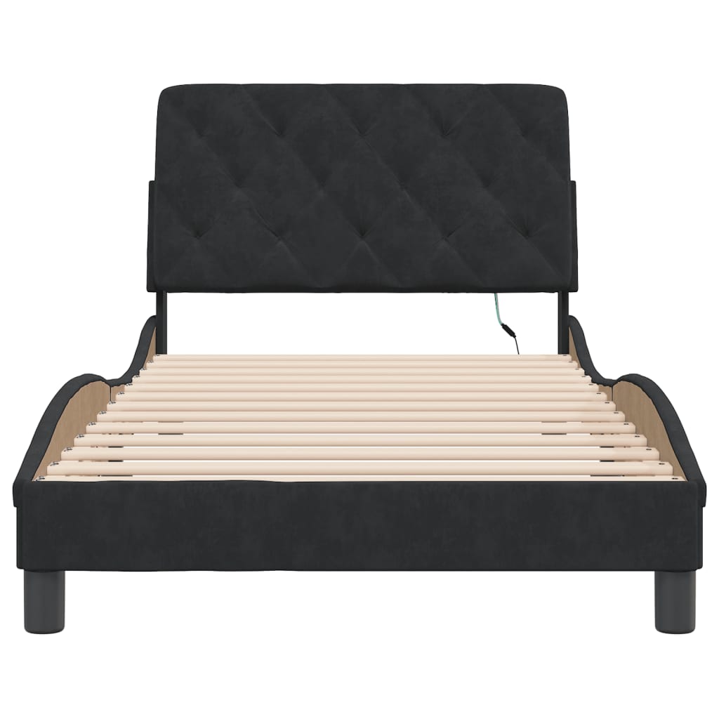 Dieses Bettgestell mit LED-Leuchten sorgt für eine erholsame Nachtruhe! Es stellt eine einladende Ergänzung zu jedem Schlafzimmer dar. Weicher Samt: Samt ist ein weicher und bequemer Stoff, der sich angenehm auf der Haut anfühlt. Sperrholzlatten: Die Sperrholzlatten sorgen für eine gute Gewichtsverteilung und auch dafür, dass die Matratze bei jeder Bewegung deines Körpers während des Schlafes an Ort und Stelle bleibt. Ausgezeichnete Unterstützung: Das Kopfteil-Kissen ist mit Schaumstoff gefüllt und fühlt sich daher extra weich und komfortabel an. Es bietet eine ausgezeichnete Rückenunterstützung beim Sitzen im Bett oder Fernsehen. Bunter LED-Streifen: Die farbenfrohen LED-Leuchten bringen das Schlafzimmer zum Leuchten! Die Klettverschlüsse auf der Rückseite des Kopfteils können zur Befestigung der LED-Leuchten verwendet werden. Wellenförmiges Seitendesign: Das stilvolle und raffinierte Design in Wellenform verleiht deiner Einrichtung eine moderne und elegante Note und macht das Bettgestell zum Mittelpunkt deines Schlafzimmers. Gut zu wissen:Bei diesem Bett ist keine Matratze im Lieferumfang enthalten. Wir bieten jedoch eine große Auswahl an Matratzen an. Du kannst in unserem Shop nach einer passenden Matratze suchen.Das Produkt verfügt über einen USB-Anschluss, für den eine zertifizierte 5V-USB-Stromquelle erforderlich ist (nicht im Lieferumfang enthalten).
