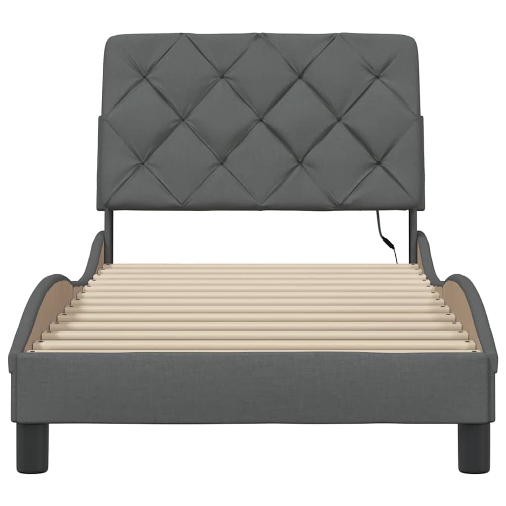 Dieses Bettgestell mit LED-Leuchten sorgt für eine erholsame Nachtruhe! Es stellt eine einladende Ergänzung zu jedem Schlafzimmer dar. Weiches und strapazierfähiges Material: Polyestergewebe fühlt sich weich an, ist atmungsaktiv sowie strapazierfähig und sorgt so für höchsten Komfort und Behaglichkeit.Lattenrost für optimale Unterstützung: Das Bettgestell ist mit Latten ausgestattet, die deine Matratze optimal stützen und atmen lassen.Vielseitiges Kopfteil: Dieses Bettgestell ist mit einem Kopfteil versehen, das als komfortable Rückenstütze beim Lesen oder Fernsehen und gleichzeitig als dekoratives Element dient.LED-Beleuchtung für ein angenehmes Ambiente: Dieses Bett verfügt über LED-Leuchten, die einfach eingestellt werden können, um eine persönliche Lichtshow zu kreieren. Du kannst die Modi, Farben und Helligkeit anpassen, um das Ambiente in deinem Wohnraum zu verbessern.Wellenförmiges Seitendesign: Das stilvolle und raffinierte Design in Wellenform verleiht deiner Einrichtung eine moderne und elegante Note und macht das Bettgestell zum Mittelpunkt deines Schlafzimmers. Gut zu wissen:Bei diesem Bett ist keine Matratze im Lieferumfang enthalten. Wir bieten jedoch eine große Auswahl an Matratzen an. Du kannst in unserem Shop nach einer passenden Matratze suchen.Das Produkt verfügt über einen USB-Anschluss, für den eine zertifizierte 5V-USB-Stromquelle erforderlich ist (nicht im Lieferumfang enthalten).