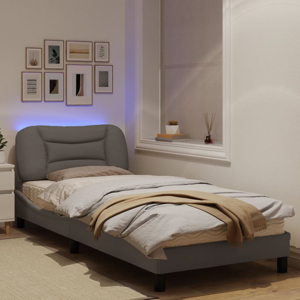 Dieses Bettgestell mit LED-Leuchten sorgt für eine erholsame Nachtruhe! Es stellt eine einladende Ergänzung zu jedem Schlafzimmer dar. Strapazierfähiger Stoff: Der Stoff weist eine schlichte und saubere Optik auf und ist außerdem atmungsaktiv und langlebig.Sperrholzlatten: Die Sperrholzlatten sorgen für eine gute Gewichtsverteilung und auch dafür, dass die Matratze bei jeder Bewegung deines Körpers während des Schlafes an Ort und Stelle bleibt.Hervorragende Unterstützung: Das Bett-Kopfteil bietet dir eine hervorragende Unterstützung, während du im Bett sitzt, um zu lesen oder fernzusehen.Bunter LED-Streifen: Die farbenfrohen LED-Leuchten bringen das Schlafzimmer zum Leuchten! Die Klettverschlüsse auf der Rückseite des Kopfteils können zur Befestigung der LED-Leuchten verwendet werden.Wellenförmiges Seitendesign: Das stilvolle und raffinierte Design in Wellenform verleiht deiner Einrichtung eine moderne und elegante Note und macht das Bettgestell zum Mittelpunkt deines Schlafzimmers. Gut zu wissen:Bei diesem Bett ist keine Matratze im Lieferumfang enthalten. Wir bieten jedoch eine große Auswahl an Matratzen an. Du kannst in unserem Shop nach einer passenden Matratze suchen.Das Produkt verfügt über einen USB-Anschluss, für den eine zertifizierte 5V-USB-Stromquelle erforderlich ist (nicht im Lieferumfang enthalten).
