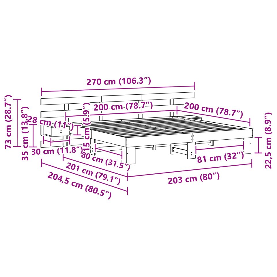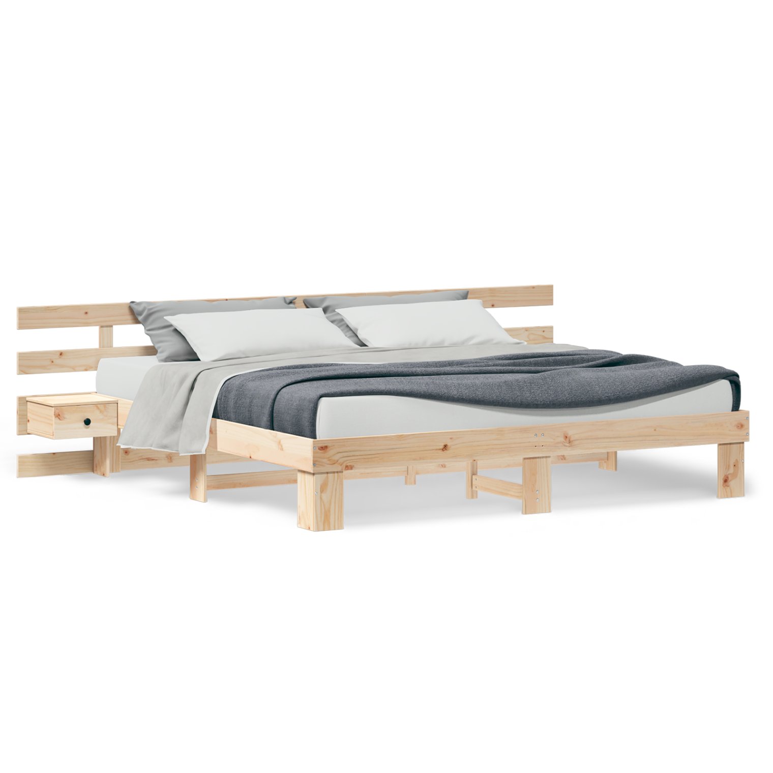 Dieses Plattformbettgestell bringt modernen Stil und praktische Vorteile in dein Zimmer. Mit seiner modernen Form aus massivem Kiefernholz sieht es schick aus und bietet starken Halt. Du brauchst keinen Lattenrost, denn das Design stützt die Matratze direkt. Das sorgt für Bequemlichkeit und Eleganz. Mit einer glatten Oberfläche ist es perfekt für jeden modernen Schlafzimmerlook. Massive Kieferkonstruktion Handgemacht aus echtem massivem Kiefernholz hat der Rahmen eine glatte Oberfläche, die die schöne Maserung zeigt. Diese Holzart ist sehr langlebig und bietet eine starke Basis für eine gute Nachtruhe. Integrierte Nachttische Zwei Nachttische auf beiden Seiten bieten praktische Aufbewahrung. Jeder hat eine Schublade für deine Nachtutensilien, verziert mit schicken Metallknöpfen für einen Hauch von Stil. Modernes Design ohne Lattenrost Der Rahmen ist stabil gebaut, sodass du keinen Lattenrost brauchst. Er unterstützt deine Matratze gut, sorgt für Stabilität und gibt deinem Schlafzimmer einen ordentlichen Look. Ideal für Schlafzimmer Dieses Bettgestell passt toll in moderne Schlafzimmer und bringt einen schicken, zeitgemäßen Touch. Die klaren Linien und das schlichte Design heben die Atmosphäre des Raums ohne Überladung. Einfach zu pflegen Es ist ganz leicht, das Bett frisch zu halten. Wische einfach mit einem feuchten Tuch darüber, um die glatte Oberfläche sauber zu halten.