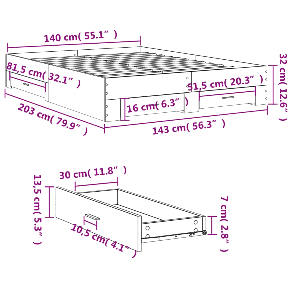 - Abmessungen der Bettschubladen (L): 81,5 x 31,5 x 13,5 cm (L x B x H)