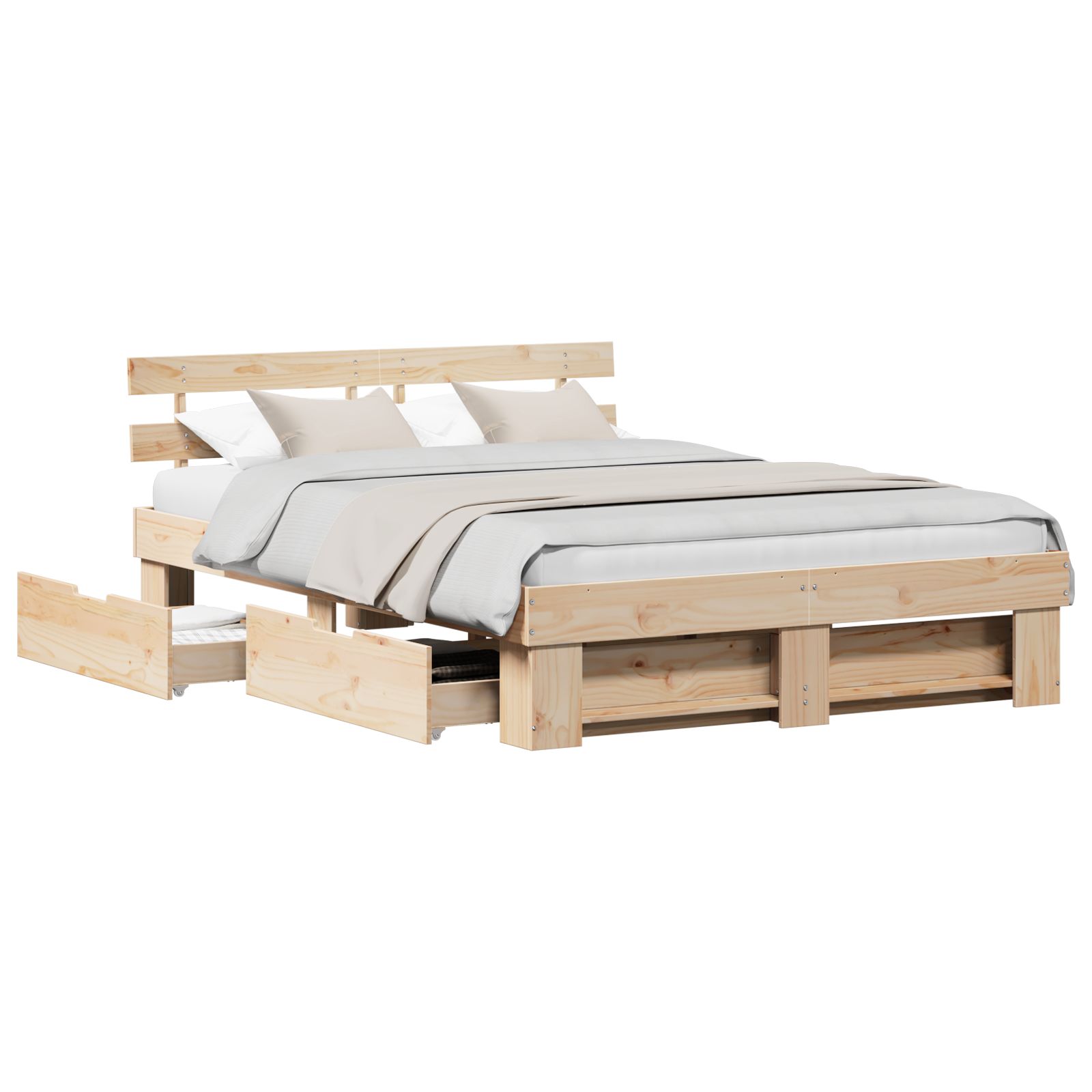 Dieses Plattformbett hat ein minimalistisches Design, das perfekt zu modernen Schlafzimmern passt. Hergestellt aus solidem Kiefernholz, bringt es einen Hauch von natürlicher Eleganz und der Stauraum darunter ist super praktisch, um alles ordentlich zu halten. Es geht darum, einfach und praktisch zu sein, ohne Boxsprings, und es verleiht deinem Schlafzimmer eine frische Atmosphäre. Robuste Kieferstruktur : Dieser Bettrahmen aus solidem Kiefernholz ist stabil und sieht gut aus. Eine echt gute Investition für dein Schlafzimmer. Funktionale Stauraumschubladen : Das Bett hat zwei Schubladen aus solidem Kiefernholz unter dem Bett. Diese geräumigen Schubladen sind perfekt, um dein Schlafzimmer ordentlich zu halten und bieten Platz für Bettwäsche und Decken. Modernes und minimalistisches Design : Die klaren Linien und die simple Form des Bettes schaffen ein frisches Gefühl in deinem Raum. Der minimalistische Stil ist pflegeleicht und passt super zu verschiedenen Schlafzimmerdesigns. Robuster Rahmen : Du brauchst keine Boxspringmatratze, und der stabile Lattenrahmen kann bis zu 110 kg tragen, was für Komfort und Stabilität sorgt. Dieses clevere Design spart Geld und macht das Leben leichter. Effiziente Montage : Der Aufbau geht einfach mit zwei Leuten und einem Schraubendreher sowie einem Hammer. Auch wenn es stark ist, ist der Zusammenbau easy, sodass du es problemlos in dein Zuhause integrieren kannst.