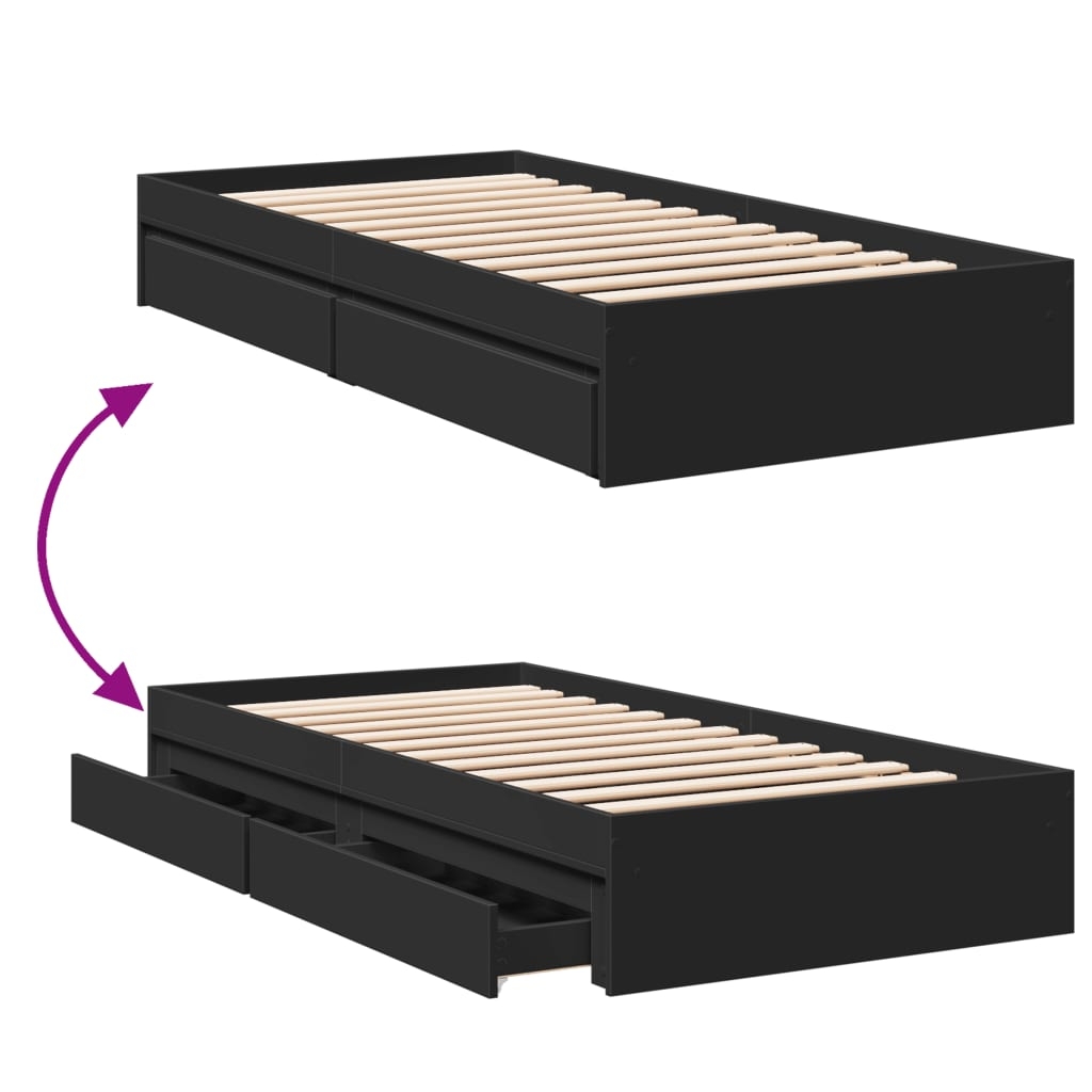 Verleihe deinem Schlafzimmer eine moderne Note mit diesem Bettgestell mit Schubladen! Es stellt eine praktische und dekorative Ergänzung zu deinem Wohnraum dar. Langlebiges Material: Dieses Bettgestell ist aus Holzwerkstoff gefertigt. Holzwerkstoff ist ein Material von außergewöhnlicher Qualität mit glatter Oberfläche, das sich durch Festigkeit, Stabilität und Feuchtigkeitsbeständigkeit auszeichnet.Robuste Latten: Die Latten aus Sperrholz sorgen für eine gute Gewichtsverteilung und auch dafür, dass die Matratze bei jeder Bewegung deines Körpers während des Schlafes an Ort und Stelle bleibt.Stauraum: Die mitgelieferten Bettschubladen bietet reichlich Stauraum zur Aufbewahrung wichtiger Sachen, um für Ordnung in Ihrem Zimmer zu sorgen. Gut zu wissen:Bei diesem Bett ist keine Matratze im Lieferumfang enthalten. Wir bieten jedoch eine große Auswahl an Matratzen an. Du kannst in unserem Shop nach einer passenden Matratze suchen.