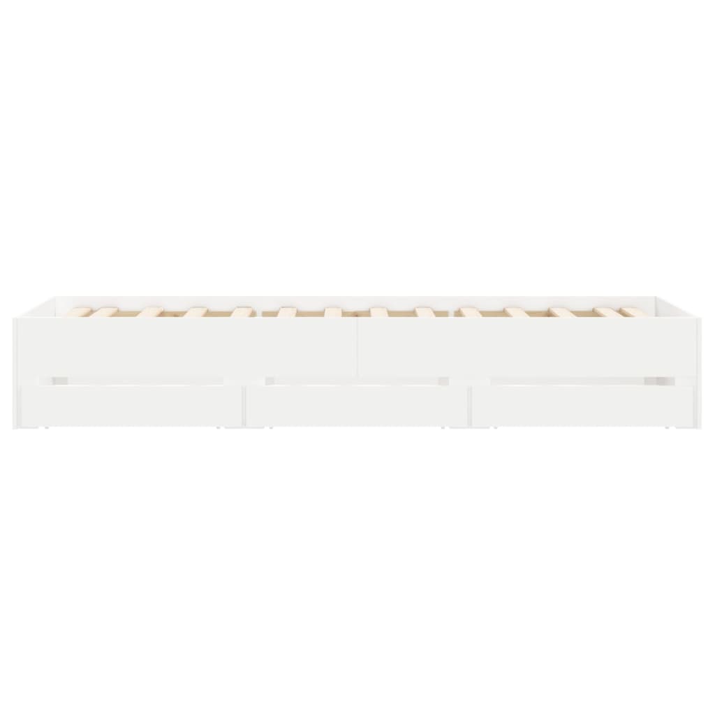 Verleihe deinem Schlafzimmer eine moderne Note mit diesem Bettgestell mit Schubladen! Es stellt eine praktische und dekorative Ergänzung zu deinem Wohnraum dar. Langlebiges Material: Dieses Bettgestell ist aus Holzwerkstoff gefertigt. Holzwerkstoff ist ein Material von außergewöhnlicher Qualität mit glatter Oberfläche, das sich durch Festigkeit, Stabilität und Feuchtigkeitsbeständigkeit auszeichnet.Robuste Latten: Die Latten aus Sperrholz sorgen für eine gute Gewichtsverteilung und auch dafür, dass die Matratze bei jeder Bewegung deines Körpers während des Schlafes an Ort und Stelle bleibt.Stauraum: Die mitgelieferten Bettschubladen bietet reichlich Stauraum zur Aufbewahrung wichtiger Sachen, um für Ordnung in Ihrem Zimmer zu sorgen. Gut zu wissen:Bei diesem Bett ist keine Matratze im Lieferumfang enthalten. Wir bieten jedoch eine große Auswahl an Matratzen an. Du kannst in unserem Shop nach einer passenden Matratze suchen.