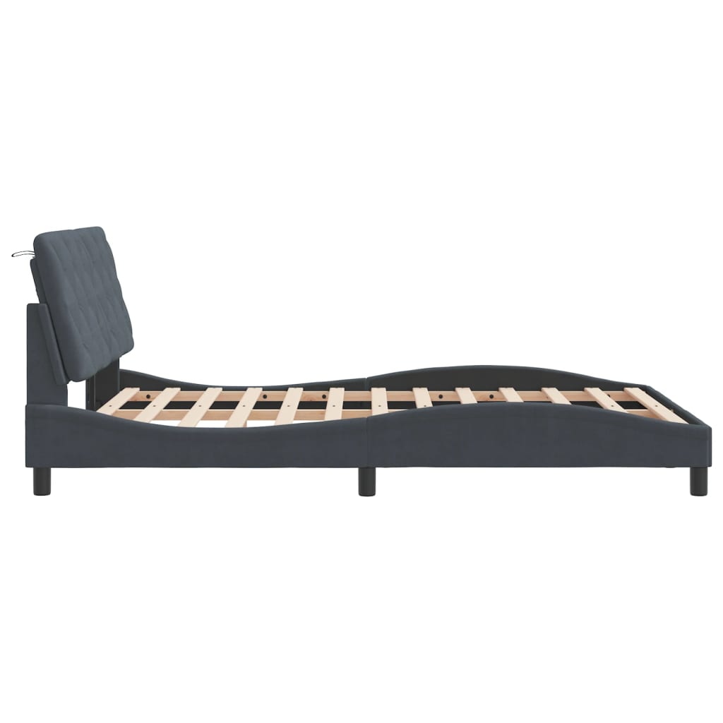 Mit diesem Bettgestell mit Kopfteil genießt du einen besseren, erholsameren Schlaf! Es ist eine angenehme Bereicherung für jedes Schlafzimmer. Weicher Samt: Samt ist ein weicher und bequemer Stoff, der sich angenehm auf der Haut anfühlt.Sperrholzlatten: Die Sperrholzlatten sorgen für eine gute Gewichtsverteilung und auch dafür, dass die Matratze bei jeder Bewegung deines Körpers während des Schlafes an Ort und Stelle bleibt.Ausgezeichnete Unterstützung: Das Kopfteil-Kissen ist mit Schaumstoff gefüllt und fühlt sich daher extra weich und komfortabel an. Es bietet eine ausgezeichnete Rückenunterstützung beim Sitzen im Bett oder Fernsehen.Praktisches Design: Das Kopfteil mit Kissen hat einen Reißverschluss für eine einfache Montage. Die Klettverschlüsse auf der Rückseite können zur Befestigung von LED-Leisten verwendet werden.Wellenförmiges Seitendesign: Das stilvolle und raffinierte Design in Wellenform verleiht deiner Einrichtung eine moderne und elegante Note und macht das Bettgestell zum Mittelpunkt deines Schlafzimmers. Gut zu wissen:Bei diesem Bett ist keine Matratze im Lieferumfang enthalten. Wir bieten jedoch eine große Auswahl an Matratzen an. Du kannst in unserem Shop nach einer passenden Matratze suchen.