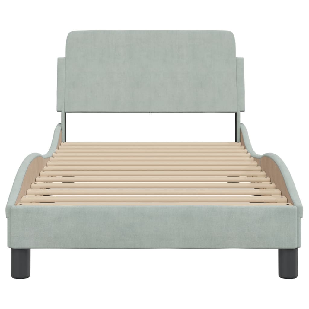 Mit diesem Bettgestell mit Kopfteil genießt du einen besseren, erholsameren Schlaf! Es ist eine angenehme Bereicherung für jedes Schlafzimmer. Weicher Samt: Samt ist ein weicher und bequemer Stoff, der sich angenehm auf der Haut anfühlt.Stützbeine: Das Bett wird von stabilen Beinen getragen, die seine Stabilität, Sicherheit und Festigkeit gewährleisten.Sperrholzlatten: Die Sperrholzlatten sorgen für eine gute Gewichtsverteilung und auch dafür, dass die Matratze bei jeder Bewegung deines Körpers während des Schlafes an Ort und Stelle bleibt.Hervorragende Unterstützung: Das Bett-Kopfteil bietet dir eine hervorragende Unterstützung, während du im Bett sitzt, um zu lesen oder fernzusehen.Wellenförmiges Seitendesign: Das stilvolle und raffinierte Design in Wellenform verleiht deiner Einrichtung eine moderne und elegante Note und macht das Bettgestell zum Mittelpunkt deines Schlafzimmers. Gut zu wissen:Bei diesem Bett ist keine Matratze im Lieferumfang enthalten. Wir bieten jedoch eine große Auswahl an Matratzen an. Du kannst in unserem Shop nach einer passenden Matratze suchen.