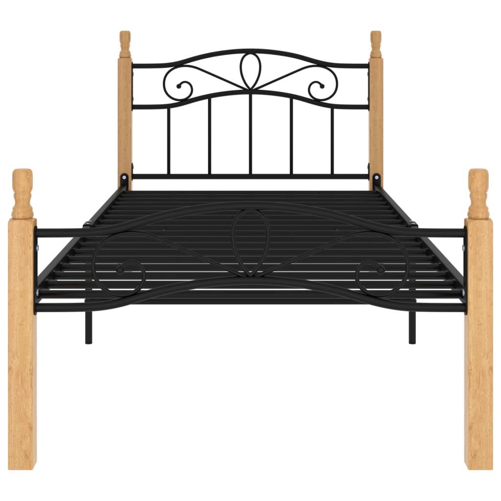 Dieses Bettgestell schafft eine warme, komfortable Atmosphäre in Ihrem Schlafzimmer! Dieses Metallbett zeichnet sich durch ein stilvolles Design und eine solide Konstruktion aus, da er aus starkem, pulverbeschichtetem Metall und massivem Eichenholz gefertigt ist. Die starken Latten bieten den nötigen Halt und Komfort. In diesem Bett können Sie Nacht für Nacht großartig schlafen! Bitte beachten Sie: Die Lieferung umfasst nur das Bettgestell. Matratzen sind nicht enthalten. Sie können in unserem Shop eine dazu passende Matratze kaufen.