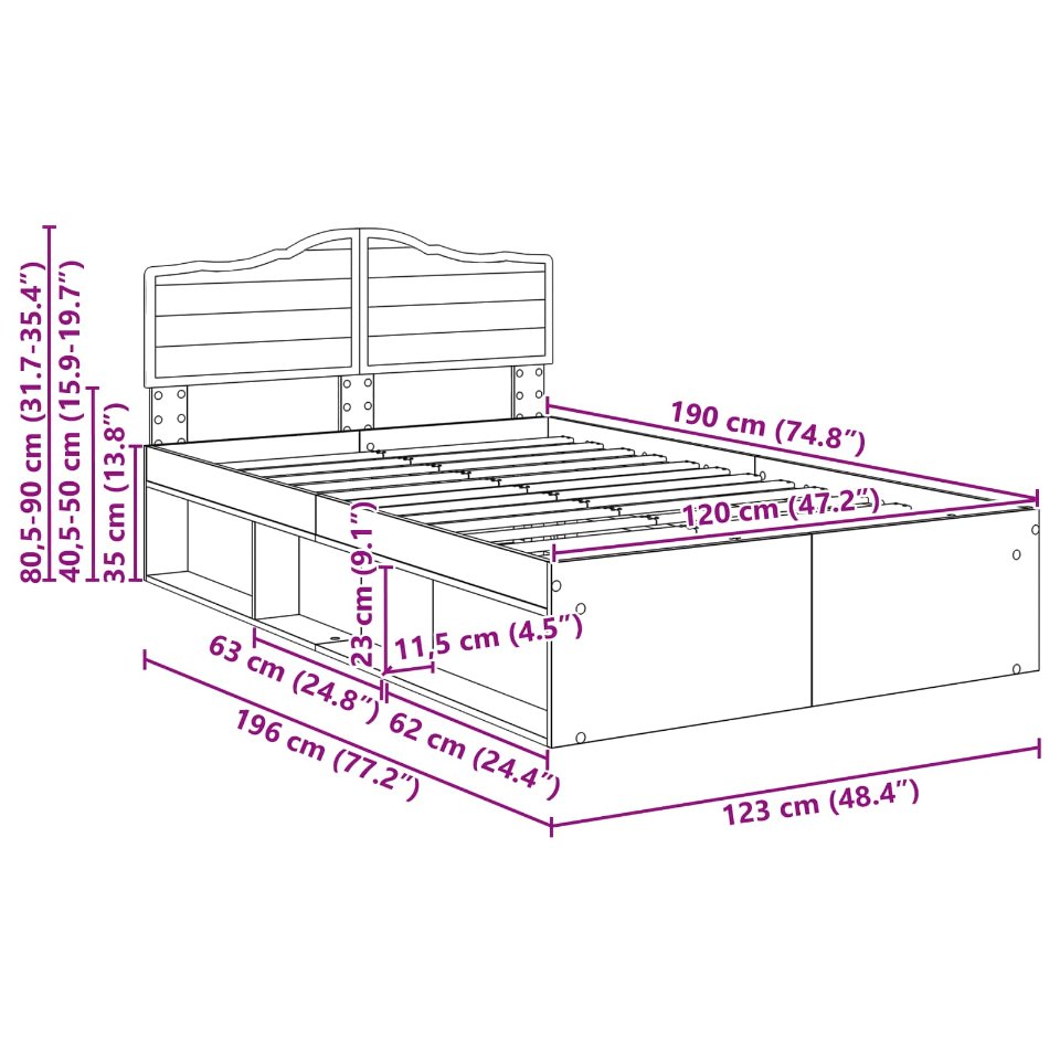 - Matratzengröße: Kurzes Kleines Doppelbett (120 cm x 190 cm oder 47" x 75")