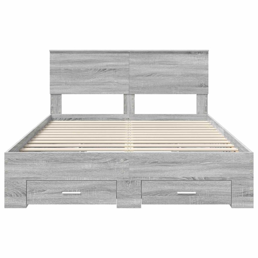 Dieses schicke moderne Aufbewahrungsbettgestell bringt Einfachheit und Funktionalität in dein Schlafzimmer. Es ist für Räume gedacht, wo Platz und Ordnung wichtig sind. Es verbindet Form und Funktion mit klaren Linien und einem dezenten Look. Ideal für alle, die ein gutes Gleichgewicht zwischen Stil und Praktikabilität suchen, wertet dieses Bettgestell deinen Schlafbereich sowohl optisch als auch praktisch auf. Schon beim ersten Blick spricht das schlichte und moderne Design an und macht es zur perfekten Wahl für städtische Apartments, moderne Häuser und Zeitgemäße Schlafzimmer. Holzwerkstoffkonstruktion Dieses Bettgestell nutzt Holzwerkstoff, bekannt für Stabilität und Langlebigkeit. Der moderne Look bringt einen Hauch von Eleganz in jeden Raum und sorgt dafür, dass es auch bei regelmäßigem Gebrauch stabil bleibt. Es kombiniert schlanke Optik mit Robustheit, die jahrelang hält. Integrierte Stauraumschubladen Dieses Bett ist darauf ausgelegt, Platz zu sparen und hat Schubladen aus dem gleichen Holzwerkstoff, die perfekt ins Design passen. Sie bieten genug Platz für Bettwäsche, Kleidung oder andere Sachen und reduzieren Unordnung im Schlafzimmer. Die traditionellen Schubladengriffe ermöglichen schnellen Zugriff auf alles, was du brauchst. Kopfteil inklusive Aus Holzwerkstoff gefertigt, gibt das Kopfteil dem Bettgestell eine abgerundete Optik. Es ist nicht nur dekorativ, sondern auch praktisch, damit du beim Lesen oder TV schauen im Bett bequem anlehnen kannst. Das minimalistische Design betont den modernen Look des Bettes und verbessert die Atmosphäre im Schlafzimmer. Einfache Pflege & Reinigung Du kannst die Oberfläche einfach mit einem feuchten Tuch abwischen, was die Pflege super simpel macht. Die schlichten Pflegehinweise sorgen dafür, dass dein Bettgestell frisch und schick bleibt, ohne viel Aufwand, sodass du den Stil ganz ohne Stress genießen kannst. Bequemer Aufbau Der Aufbau ist kinderleicht und braucht nur zwei Personen und einen Schraubendreher. Jedes Teil ist gut durchdacht, sodass der Aufbau deines neuen Bettes so angenehm und einfach wie möglich ist und du gleich zu Beginn ein positives Erlebnis hast.