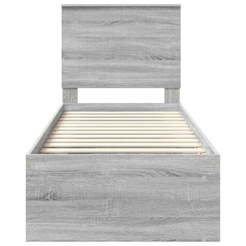 Dieses moderne Bettgestell ist ein stylisches und funktionelles Herzstück für jedes Schlafzimmer. Die rechteckige Form sorgt für eine perfekte Anordnung und bringt Harmonie in deinen Wohnraum. Schick und zeitgemäß bieten die klaren Linien und das minimalistische Design Einfachheit und Eleganz und sind ideal für Leute, die beides – Stil und Funktion – schätzen. Das Gestell lädt zum Entspannen ein und verspricht erholsame Nächte mit einer stabilen Basis, die einen ruhigen Schlaf unterstützt. Holzwerkstoff und starkes Kiefernholz: Der Hauptrahmen ist aus Holzwerkstoffen gefertigt, die für ihre Zuverlässigkeit und ihren schicken Look bekannt sind. Das solide Kiefernholz-Kopfteil verleiht dem Teil einen natürlichen Charme und sorgt für Stabilität und Stil. Diese Materialien garantieren Stärke und Langlebigkeit und verbessern den Schlafkomfort. Stabiler Lattenrost: Ausgestattet mit stabilen Latten bietet dieses Bettgestell festen Halt für deine Matratze und minimiert Störungen während des Schlafs. Die stabilen Latten behalten bei regelmäßiger Nutzung ihre Form und bieten eine gute Basis für ungestörten Schlaf. Das Lattenrostdesign sorgt für Luftzirkulation und bietet eine gut belüftete Unterlage für die Langlebigkeit der Matratze. Modernes Design: Mit einem klaren Fokus auf Einfachheit strahlt das Bettgestell Modernität aus, mit seinen schlichten Linien und minimalen Verzierungen. Seine schlanke Silhouette fügt sich problemlos in einen minimalistischen Einrichtungsstil ein und passt sich verschiedenen Schlafzimmer-Themen an. Praktikabilität ist in sein Design eingebaut, was es zu einer zeitlosen Ergänzung für dein Zuhause macht. Vielseitige Verwendung: Ideal für Hauptschlafzimmer, Gästezimmer und Rückzugsorte für Jugendliche, fügt sich dieses Gestell mühelos in verschiedene Umgebungen ein. Egal, ob du eine neue Wohnung einrichtest oder an einem bestehenden Setup arbeitest, seine Flexibilität hebt seine Fähigkeit hervor, mit unterschiedlichen Wohnsituationen zu harmonieren und eine Vielzahl von Bedürfnissen zu erfüllen. Einfache Pflege: Halte die makellose Form deines Gestells mühelos, indem du einfach mit einem feuchten Tuch abwischst, um die Oberflächen frisch und einladend zu halten. Die pflegeleichte Wartung behält seinen Charme und seine Funktionalität über die Zeit, sodass du dich an seinem gepflegten Aussehen in deinem Schlafzimmer erfreuen kannst.
