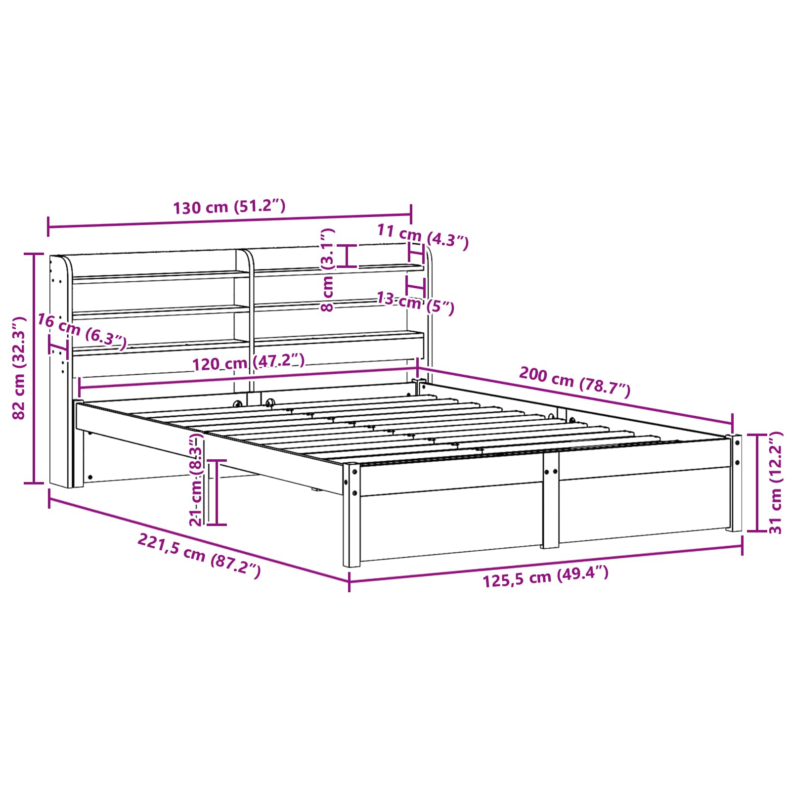 - Matratzengröße: Kleines Doppelbett (120 cm x 200 cm oder 47" x 79")