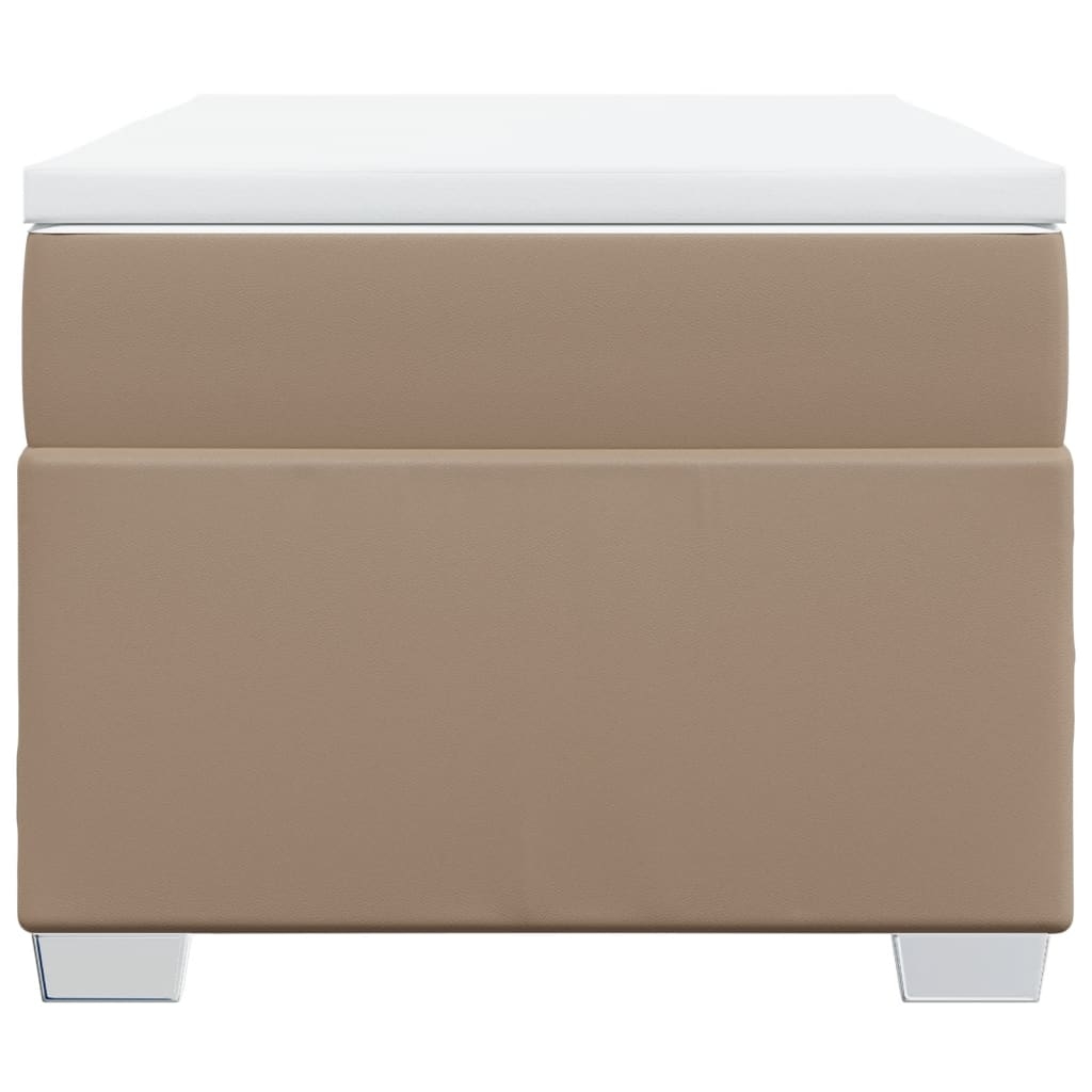Mit diesem Boxspringbett genießt du eine erholsame Nachtruhe! Es sorgt für maximale Entspannung und einen angenehmen Schlaf. Langlebiges Kunstleder: Hochwertiges Kunstleder ist ein äußerst langlebiges Material. Es ist schmutzabweisend und lässt sich mit einem feuchten Tuch einfach reinigen. Durch die glatte Oberfläche weist es die Schönheit von Echtleder und einen luxuriösen Look auf.Taschenfederkernmatratze: Diese Matratze hat einzelne Taschenfedern, die unabhängig voneinander arbeiten. Somit bietet sie dir optimalen Halt, indem sie auf Druckstellen in jedem Bereich unabhängig reagieren. Diese Konstruktion verhindert das "Zusammenrollen" und reduziert die Bewegungsübertragung im Vergleich zu alten Federkernmatratzen. Jede Taschenfeder stützt die Körper-Druckstellen individuell.Komfortable Matratzenauflage: Die Auflage verbessert den Halt und den Komfort mit ihrer weichen, atmungsaktiven Oberfläche und verlängert gleichzeitig die Lebensdauer deiner Matratze. Der abnehmbare Bezug ermöglicht ein einfaches Waschen, was die Pflege der Matratze zum Kinderspiel macht.Latten für optimale Unterstützung: Das Bettgestell ist mit Latten ausgestattet, die deine Matratze optimal stützen und auch für Atmungsaktivität sorgen.Stabile und starke Bettfüße: Dieses Bett wird von stabilen Füßen getragen, die für Stabilität und sicheren Halt sorgen. Gut zu wissen:Aus hygienischen Gründen kann die Matratze nicht zurückgegeben werden, wenn die Verpackung entfernt oder geöffnet wurde.