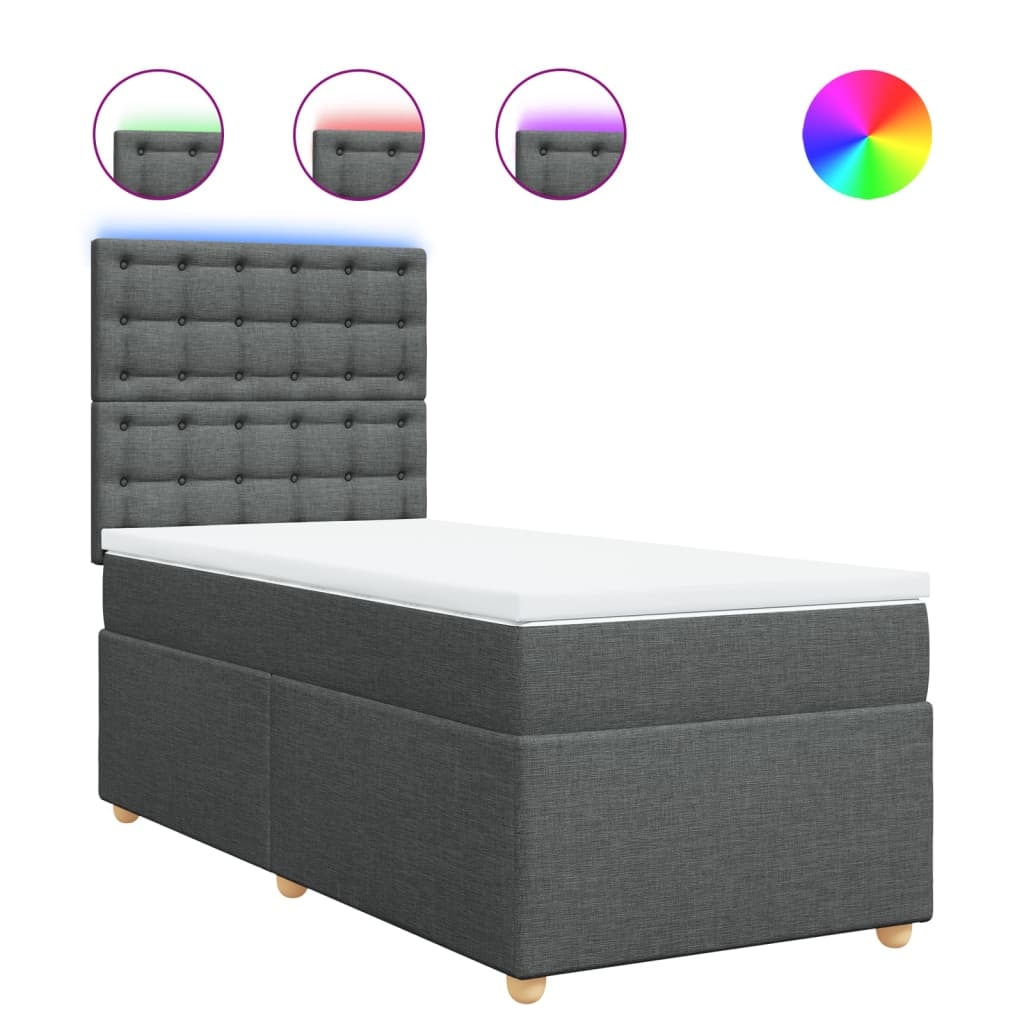 Mit diesem Boxspringbett genießt du eine erholsame Nachtruhe! Es sorgt für maximale Entspannung und einen angenehmen Schlaf. Weiches und strapazierfähiges Material: Das Polyestergewebe vereint Weichheit, Atmungsaktivität und Strapazierfähigkeit, sodass du ultimativen Komfort und Gemütlichkeit im Bett erlebst. Taschenfederkernmatratze: Diese Matratze hat einzelne Taschenfedern, die unabhängig voneinander arbeiten. Somit bietet sie dir optimalen Halt, indem sie auf Druckstellen in jedem Bereich unabhängig reagieren. Diese Konstruktion verhindert das "Zusammenrollen" und reduziert die Bewegungsübertragung im Vergleich zu alten Federkernmatratzen. Jede Taschenfeder stützt die Körper-Druckstellen individuell. LED-Beleuchtung für ein angenehmes Ambiente: Dieses Bett verfügt über LED-Leuchten, die einfach eingestellt werden können, um eine persönliche Lichtshow zu kreieren. Du kannst die Modi, Farben und Helligkeit anpassen, um das Ambiente deines Innenraums zu verbessern. Höhenverstellbares Kopfteil: Das Kopfteil ist nach Wunsch höhenverstellbar. Komfortable Matratzenauflage: Die Auflage verbessert den Halt und den Komfort mit ihrer weichen, atmungsaktiven Oberfläche und verlängert gleichzeitig die Lebensdauer deiner Matratze. Der abnehmbare Bezug ermöglicht ein einfaches Waschen, was die Pflege der Matratze zum Kinderspiel macht. Gut zu wissen: Das Produkt verfügt über einen USB-Anschluss, für den eine zertifizierte 5V-USB-Stromquelle erforderlich ist (nicht im Lieferumfang enthalten). Aus hygienischen Gründen kann die Matratze nicht zurückgegeben werden, wenn die Verpackung entfernt oder geöffnet wurde. Nur der Teil mit dem Symbol kann geschnitten werden und nur der Teil mit dem USB funktioniert auch weiterhin.