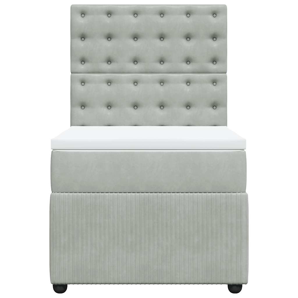 Mit diesem Boxspringbett genießt du eine erholsame Nachtruhe! Es sorgt für maximale Entspannung und einen angenehmen Schlaf. Weiches und komfortables Material: Der Samtstoff hat eine weiche und sanfte Oberfläche, die sich angenehm auf der Haut anfühlt und höchsten Komfort bietet. Taschenfederkernmatratze: Diese Matratze hat einzelne Taschenfedern, die unabhängig voneinander arbeiten. Somit bietet sie dir optimalen Halt, indem sie auf Druckstellen in jedem Bereich unabhängig reagieren. Diese Konstruktion verhindert das "Zusammenrollen" und reduziert die Bewegungsübertragung im Vergleich zu alten Federkernmatratzen. Jede Taschenfeder stützt die Körper-Druckstellen individuell. LED-Beleuchtung für ein angenehmes Ambiente: Dieses Bett verfügt über LED-Leuchten, die einfach eingestellt werden können, um eine persönliche Lichtshow zu kreieren. Du kannst die Modi, Farben und Helligkeit anpassen, um das Ambiente deines Innenraums zu verbessern. Höhenverstellbares Kopfteil: Das Kopfteil ist nach Wunsch höhenverstellbar. Komfortable Matratzenauflage: Die Auflage verbessert den Halt und den Komfort mit ihrer weichen, atmungsaktiven Oberfläche und verlängert gleichzeitig die Lebensdauer deiner Matratze. Der abnehmbare Bezug ermöglicht ein einfaches Waschen, was die Pflege der Matratze zum Kinderspiel macht. Gut zu wissen: Das Produkt verfügt über einen USB-Anschluss, für den eine zertifizierte 5V-USB-Stromquelle erforderlich ist (nicht im Lieferumfang enthalten). Aus hygienischen Gründen kann die Matratze nicht zurückgegeben werden, wenn die Verpackung entfernt oder geöffnet wurde. Nur der Teil mit dem Symbol kann geschnitten werden und nur der Teil mit dem USB funktioniert auch weiterhin.