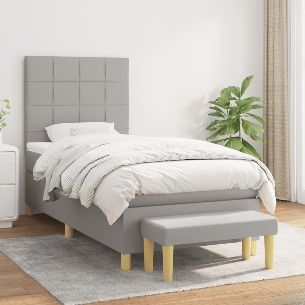 Mit diesem Boxspringbett genießt du eine erholsame Nachtruhe! Es sorgt für maximale Entspannung und einen angenehmen Schlaf. Strapazierfähiger Stoff: Der Stoff weist eine schlichte und saubere Optik auf und ist außerdem atmungsaktiv und langlebig.Praktisches Kopfteil: Das Bett-Kopfteil ist nach Belieben höhenverstellbar. Es ist eine hervorragende Rückenlehne, während du im Bett sitzt, liest oder fern siehst.Taschenfederkernmatratze: Die eingebaute Einzeltaschenfederkernmatratze zeichnet sich durch sehr hohe Qualität aus und gewährleistet gleichzeitig eine hohe Strapazierfähigkeit und Anpassungsfähigkeit. Sie absorbiert effektiv die durch das Werfen und Drehen verursachten Geräusche und Stöße.Mittelharte Unterstützung: Die Bettmatratze bietet zusätzliche Stabilität und genau den richtigen Härtegrad, ohne den Komfort zu beeinträchtigen. Sie ist also ideal für Rücken- oder Bauchschläfer.Hautfreundliche Matratzenauflage: Der Matratzenschoner ist mit einem strapazierfähigen sowie hautfreundlichen Stoffbezug versehen und fühlt sich daher weich und angenehm an.Multifunktional: Diese Bank kann als zusätzliche Sitzgelegenheit in deiner Wohnung dienen. Sie kann auch als Bettbank verwendet werden. Hinweis:Aus hygienischen Gründen kann die Matratze nicht zurückgegeben werden, wenn die Verpackung entfernt oder geöffnet wurde.Jedes Produkt wird mit einer Montageanleitung in der Verpackung für eine einfache Montage geliefert.