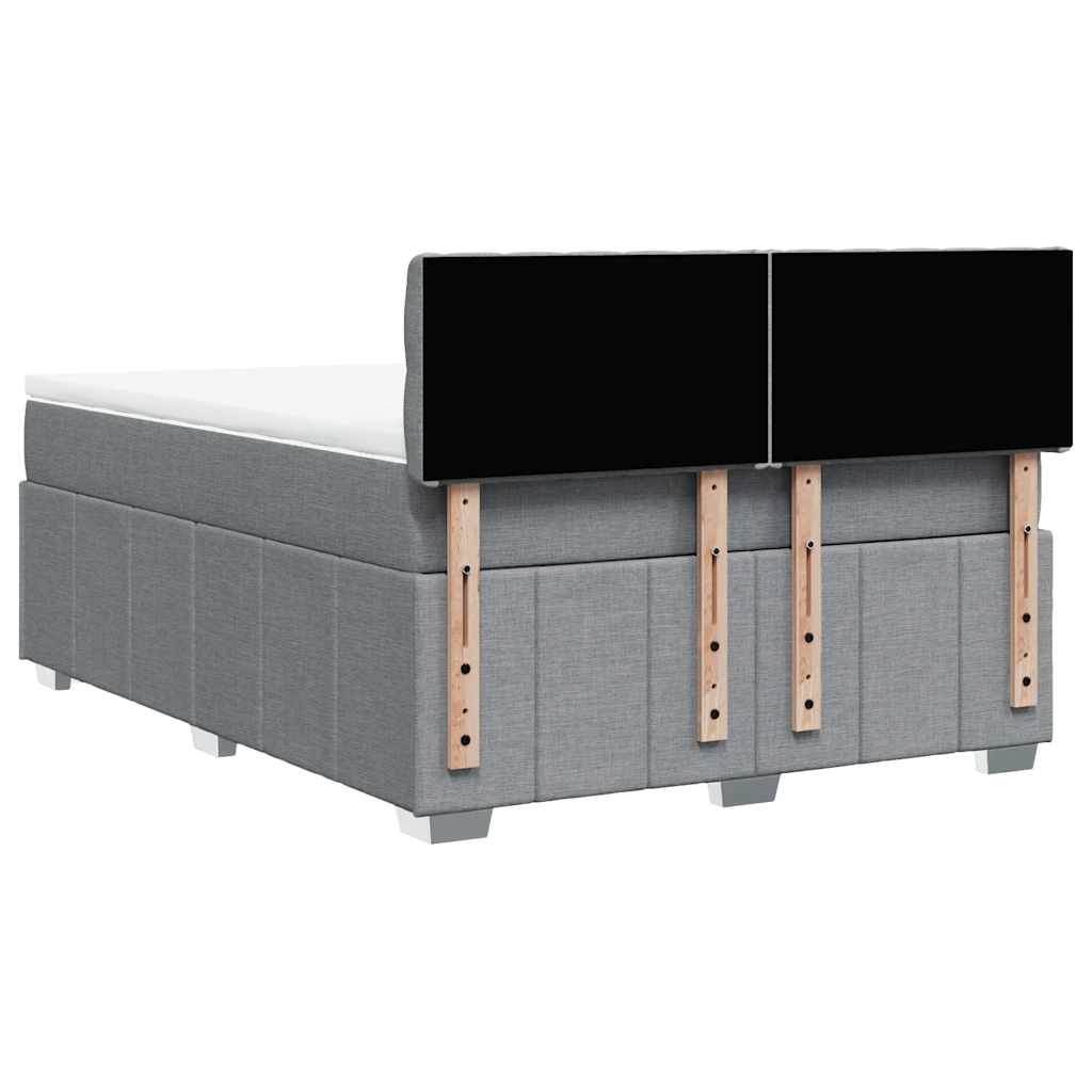 Mit diesem Boxspringbett genießt du eine erholsame Nachtruhe! Es sorgt für maximale Entspannung und einen angenehmen Schlaf. Weiches und strapazierfähiges Material: Das Polyestergewebe vereint Weichheit, Atmungsaktivität und Strapazierfähigkeit, sodass du ultimativen Komfort und Gemütlichkeit im Bett erlebst.Taschenfederkernmatratze: Diese Matratze hat einzelne Taschenfedern, die unabhängig voneinander arbeiten. Somit bietet sie dir optimalen Halt, indem sie auf Druckstellen in jedem Bereich unabhängig reagieren. Diese Konstruktion verhindert das "Zusammenrollen" und reduziert die Bewegungsübertragung im Vergleich zu alten Federkernmatratzen. Jede Taschenfeder stützt die Körper-Druckstellen individuell.Höhenverstellbares Kopfteil: Das Kopfteil ist nach Wunsch höhenverstellbar.Komfortable Matratzenauflage: Die Auflage verbessert den Halt und den Komfort mit ihrer weichen, atmungsaktiven Oberfläche und verlängert gleichzeitig die Lebensdauer deiner Matratze. Der abnehmbare Bezug ermöglicht ein einfaches Waschen, was die Pflege der Matratze zum Kinderspiel macht.Latten für optimale Unterstützung: Das Bettgestell ist mit Latten ausgestattet, die deine Matratze optimal stützen und auch für Atmungsaktivität sorgen. Gut zu wissen:Aus hygienischen Gründen kann die Matratze nicht zurückgegeben werden, wenn die Verpackung entfernt oder geöffnet wurde.