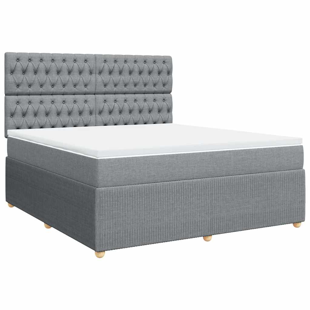 Mit diesem Boxspringbett genießt du eine erholsame Nachtruhe! Es sorgt für maximale Entspannung und einen angenehmen Schlaf. Weiches und strapazierfähiges Material: Das Polyestergewebe vereint Weichheit, Atmungsaktivität und Strapazierfähigkeit, sodass du ultimativen Komfort und Gemütlichkeit im Bett erlebst. Taschenfederkernmatratze: Diese Matratze hat einzelne Taschenfedern, die unabhängig voneinander arbeiten. Somit bietet sie dir optimalen Halt, indem sie auf Druckstellen in jedem Bereich unabhängig reagieren. Diese Konstruktion verhindert das "Zusammenrollen" und reduziert die Bewegungsübertragung im Vergleich zu alten Federkernmatratzen. Jede Taschenfeder stützt die Körper-Druckstellen individuell. LED-Beleuchtung für ein angenehmes Ambiente: Dieses Bett verfügt über LED-Leuchten, die einfach eingestellt werden können, um eine persönliche Lichtshow zu kreieren. Du kannst die Modi, Farben und Helligkeit anpassen, um das Ambiente deines Innenraums zu verbessern. Höhenverstellbares Kopfteil: Das Kopfteil ist nach Wunsch höhenverstellbar. Komfortable Matratzenauflage: Die Auflage verbessert den Halt und den Komfort mit ihrer weichen, atmungsaktiven Oberfläche und verlängert gleichzeitig die Lebensdauer deiner Matratze. Der abnehmbare Bezug ermöglicht ein einfaches Waschen, was die Pflege der Matratze zum Kinderspiel macht. Gut zu wissen: Das Produkt verfügt über einen USB-Anschluss, für den eine zertifizierte 5V-USB-Stromquelle erforderlich ist (nicht im Lieferumfang enthalten). Aus hygienischen Gründen kann die Matratze nicht zurückgegeben werden, wenn die Verpackung entfernt oder geöffnet wurde. Nur der Teil mit dem Symbol kann geschnitten werden und nur der Teil mit dem USB funktioniert auch weiterhin.