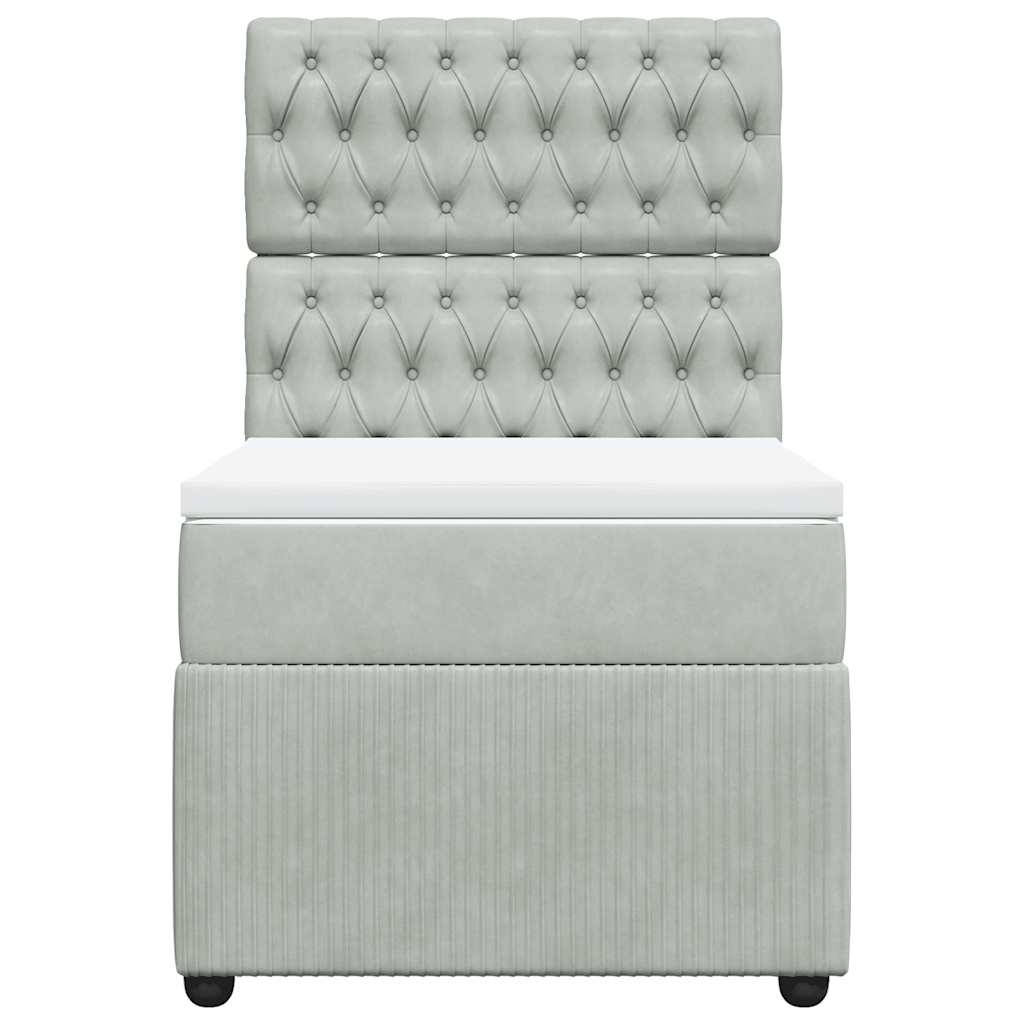 Mit diesem Boxspringbett genießt du eine erholsame Nachtruhe! Es sorgt für maximale Entspannung und einen angenehmen Schlaf. Weiches und komfortables Material: Der Samtstoff hat eine weiche und sanfte Oberfläche, die sich angenehm auf der Haut anfühlt und höchsten Komfort bietet. Taschenfederkernmatratze: Diese Matratze hat einzelne Taschenfedern, die unabhängig voneinander arbeiten. Somit bietet sie dir optimalen Halt, indem sie auf Druckstellen in jedem Bereich unabhängig reagieren. Diese Konstruktion verhindert das "Zusammenrollen" und reduziert die Bewegungsübertragung im Vergleich zu alten Federkernmatratzen. Jede Taschenfeder stützt die Körper-Druckstellen individuell. LED-Beleuchtung für ein angenehmes Ambiente: Dieses Bett verfügt über LED-Leuchten, die einfach eingestellt werden können, um eine persönliche Lichtshow zu kreieren. Du kannst die Modi, Farben und Helligkeit anpassen, um das Ambiente deines Innenraums zu verbessern. Höhenverstellbares Kopfteil: Das Kopfteil ist nach Wunsch höhenverstellbar. Komfortable Matratzenauflage: Die Auflage verbessert den Halt und den Komfort mit ihrer weichen, atmungsaktiven Oberfläche und verlängert gleichzeitig die Lebensdauer deiner Matratze. Der abnehmbare Bezug ermöglicht ein einfaches Waschen, was die Pflege der Matratze zum Kinderspiel macht. Gut zu wissen:Das Produkt verfügt über einen USB-Anschluss, für den eine zertifizierte 5V-USB-Stromquelle erforderlich ist (nicht im Lieferumfang enthalten). Aus hygienischen Gründen kann die Matratze nicht zurückgegeben werden, wenn die Verpackung entfernt oder geöffnet wurde. Nur der Teil mit dem Symbol kann geschnitten werden und nur der Teil mit dem USB funktioniert auch weiterhin.