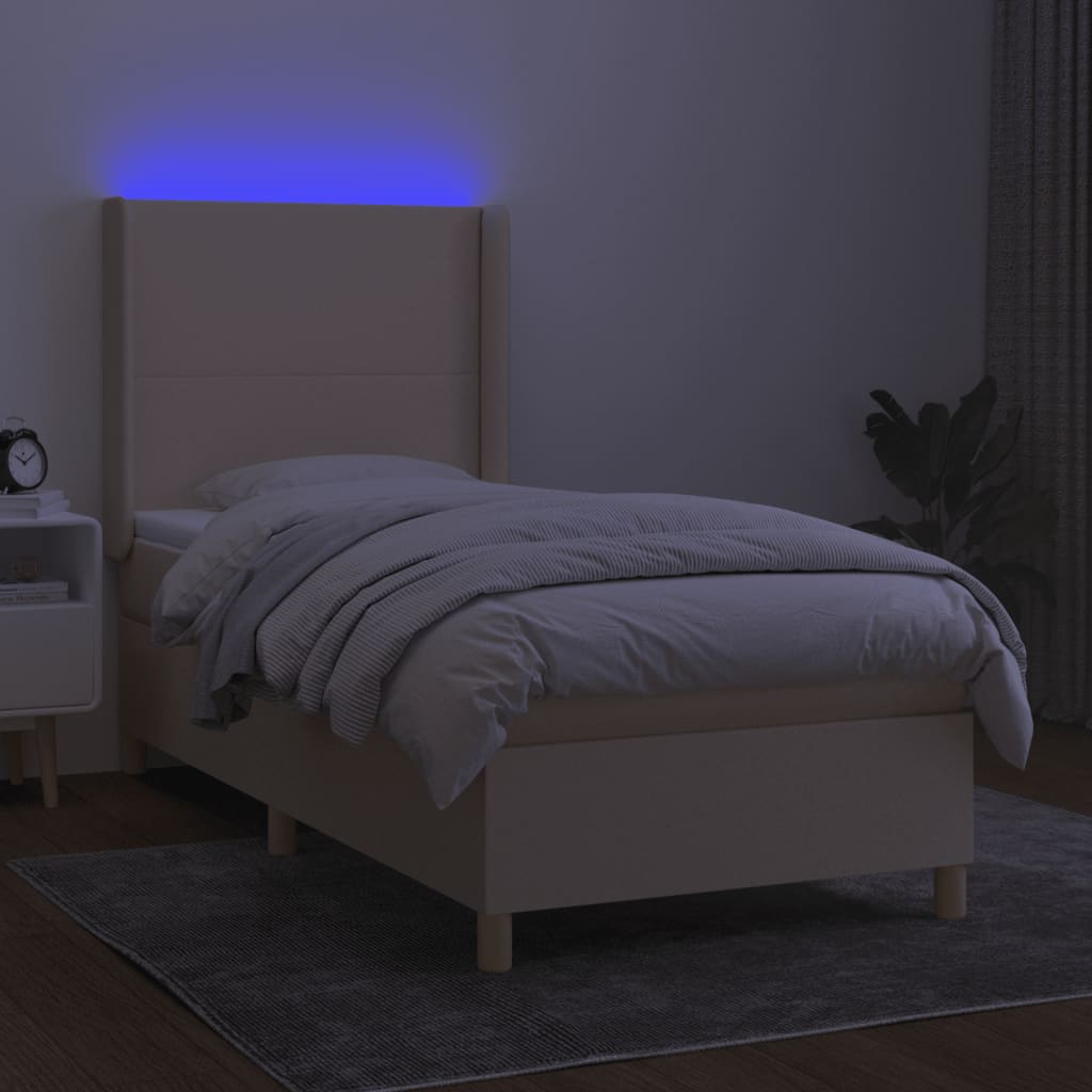 Nutze dieses Boxspringbett mit Matratze und LED für einen erholsamen Schlaf! Es wird der Mittelpunkt deines Schlafzimmers. Strapazierfähiger Stoff: Der Stoff weist eine schlichte und saubere Optik auf und ist außerdem atmungsaktiv und langlebig.Praktisches Kopfteil: Das Bett-Kopfteil ist nach Belieben höhenverstellbar. Es ist eine hervorragende Rückenlehne, während du im Bett sitzt, liest oder fern siehst.Bunter LED-Streifen: Die farbenfrohen LED-Leuchten erzeugen Verspieltheit in der Dunkelheit!Taschenfederkernmatratze: Die eingebaute Einzeltaschenfederkernmatratze zeichnet sich durch sehr hohe Qualität aus und gewährleistet gleichzeitig eine hohe Strapazierfähigkeit und Anpassungsfähigkeit. Sie absorbiert effektiv die durch das Werfen und Drehen verursachten Geräusche und Stöße.Hautfreundliche Matratzenauflage: Der Matratzenschoner ist mit einem strapazierfähigen sowie hautfreundlichen Stoffbezug versehen und fühlt sich daher weich und angenehm an. Hinweis:Aus hygienischen Gründen kann die Matratze nicht zurückgegeben werden, wenn die Verpackung entfernt oder geöffnet wurde.Nur der Teil mit dem Symbol kann geschnitten werden und nur der Teil mit dem USB funktioniert auch weiterhin.Jedes Produkt wird mit einer Montageanleitung in der Verpackung für einen einfachen Zusammenbau geliefert.Das Produkt verfügt über einen USB-Anschluss, aber die zertifizierte 5-V-USB-Stromquelle ist nicht im Lieferumfang enthalten.
