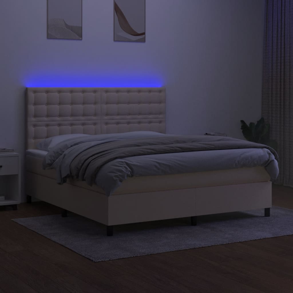 Nutze dieses Boxspringbett mit Matratze und LED für einen erholsamen Schlaf! Es wird der Mittelpunkt deines Schlafzimmers. Strapazierfähiger Stoff: Der Stoff weist eine schlichte und saubere Optik auf und ist außerdem atmungsaktiv und langlebig.Praktisches Kopfteil: Das Bett-Kopfteil ist nach Belieben höhenverstellbar. Es ist eine hervorragende Rückenlehne, während du im Bett sitzt, liest oder fern siehst.Bunter LED-Streifen: Die farbenfrohen LED-Leuchten erzeugen Verspieltheit in der Dunkelheit!Taschenfederkernmatratze: Die eingebaute Einzeltaschenfederkernmatratze zeichnet sich durch sehr hohe Qualität aus und gewährleistet gleichzeitig eine hohe Strapazierfähigkeit und Anpassungsfähigkeit. Sie absorbiert effektiv die durch das Werfen und Drehen verursachten Geräusche und Stöße.Hautfreundliche Matratzenauflage: Der Matratzenschoner ist mit einem strapazierfähigen sowie hautfreundlichen Stoffbezug versehen und fühlt sich daher weich und angenehm an. Hinweis:Aus hygienischen Gründen kann die Matratze nicht zurückgegeben werden, wenn die Verpackung entfernt oder geöffnet wurde.Nur der Teil mit dem Symbol kann geschnitten werden und nur der Teil mit dem USB funktioniert auch weiterhin.Jedes Produkt wird mit einer Montageanleitung in der Verpackung für einen einfachen Zusammenbau geliefert.Das Produkt verfügt über einen USB-Anschluss, aber die zertifizierte 5-V-USB-Stromquelle ist nicht im Lieferumfang enthalten.