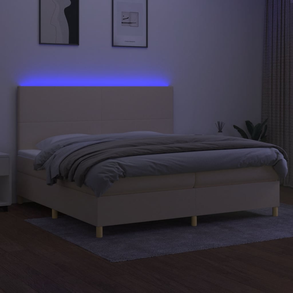 Nutze dieses Boxspringbett mit Matratze und LED für einen erholsamen Schlaf! Es wird der Mittelpunkt deines Schlafzimmers. Strapazierfähiger Stoff: Der Stoff weist eine schlichte und saubere Optik auf und ist außerdem atmungsaktiv und langlebig.Praktisches Kopfteil: Das Bett-Kopfteil ist nach Belieben höhenverstellbar. Es ist eine hervorragende Rückenlehne, während du im Bett sitzt, liest oder fern siehst.Bunter LED-Streifen: Die farbenfrohen LED-Leuchten erzeugen Verspieltheit in der Dunkelheit!Taschenfederkernmatratze: Die eingebaute Einzeltaschenfederkernmatratze zeichnet sich durch sehr hohe Qualität aus und gewährleistet gleichzeitig eine hohe Strapazierfähigkeit und Anpassungsfähigkeit. Sie absorbiert effektiv die durch das Werfen und Drehen verursachten Geräusche und Stöße.Hautfreundliche Matratzenauflage: Der Matratzenschoner ist mit einem strapazierfähigen sowie hautfreundlichen Stoffbezug versehen und fühlt sich daher weich und angenehm an. Hinweis:Aus hygienischen Gründen kann die Matratze nicht zurückgegeben werden, wenn die Verpackung entfernt oder geöffnet wurde.Nur der Teil mit dem Symbol kann geschnitten werden und nur der Teil mit dem USB funktioniert auch weiterhin.Jedes Produkt wird mit einer Montageanleitung in der Verpackung für einen einfachen Zusammenbau geliefert.Das Produkt verfügt über einen USB-Anschluss, aber die zertifizierte 5-V-USB-Stromquelle ist nicht im Lieferumfang enthalten.