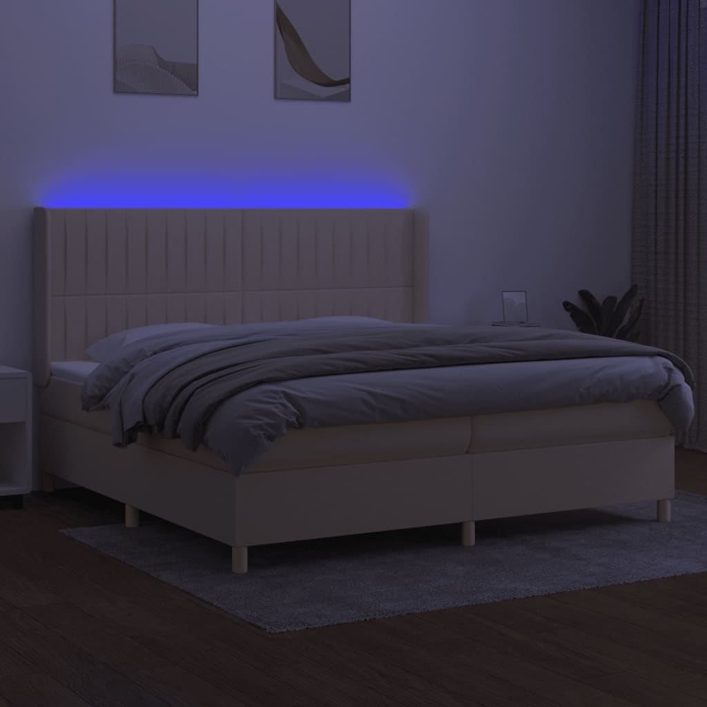 Nutze dieses Boxspringbett mit Matratze und LED für einen erholsamen Schlaf! Es wird der Mittelpunkt deines Schlafzimmers. Strapazierfähiger Stoff: Der Stoff weist eine schlichte und saubere Optik auf und ist außerdem atmungsaktiv und langlebig.Praktisches Kopfteil: Das Bett-Kopfteil ist nach Belieben höhenverstellbar. Es ist eine hervorragende Rückenlehne, während du im Bett sitzt, liest oder fern siehst.Bunter LED-Streifen: Die farbenfrohen LED-Leuchten erzeugen Verspieltheit in der Dunkelheit!Taschenfederkernmatratze: Die eingebaute Einzeltaschenfederkernmatratze zeichnet sich durch sehr hohe Qualität aus und gewährleistet gleichzeitig eine hohe Strapazierfähigkeit und Anpassungsfähigkeit. Sie absorbiert effektiv die durch das Werfen und Drehen verursachten Geräusche und Stöße.Hautfreundliche Matratzenauflage: Der Matratzenschoner ist mit einem strapazierfähigen sowie hautfreundlichen Stoffbezug versehen und fühlt sich daher weich und angenehm an. Hinweis:Aus hygienischen Gründen kann die Matratze nicht zurückgegeben werden, wenn die Verpackung entfernt oder geöffnet wurde.Nur der Teil mit dem Symbol kann geschnitten werden und nur der Teil mit dem USB funktioniert auch weiterhin.Jedes Produkt wird mit einer Montageanleitung in der Verpackung für einen einfachen Zusammenbau geliefert.Das Produkt verfügt über einen USB-Anschluss, aber die zertifizierte 5-V-USB-Stromquelle ist nicht im Lieferumfang enthalten.
