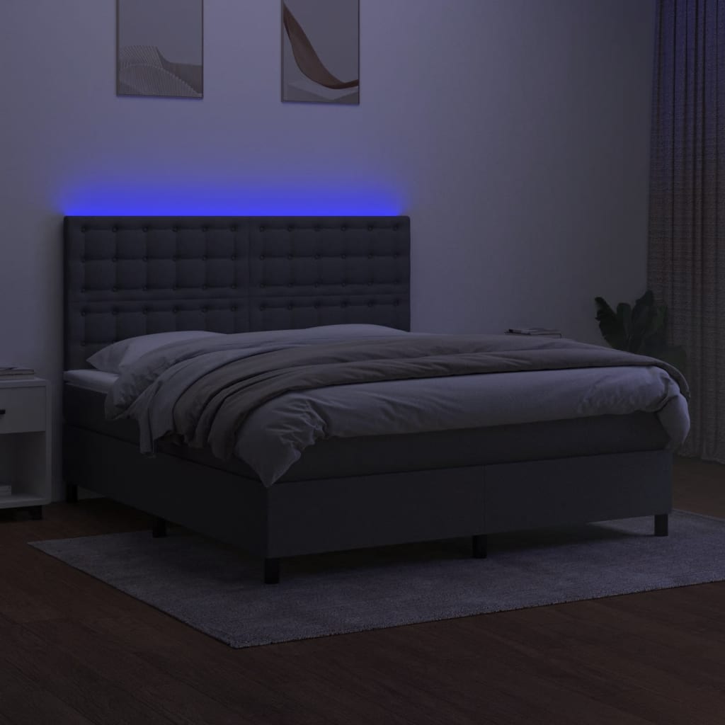 Nutze dieses Boxspringbett mit Matratze und LED für einen erholsamen Schlaf! Es wird der Mittelpunkt deines Schlafzimmers. Strapazierfähiger Stoff: Der Stoff weist eine schlichte und saubere Optik auf und ist außerdem atmungsaktiv und langlebig.Praktisches Kopfteil: Das Bett-Kopfteil ist nach Belieben höhenverstellbar. Es ist eine hervorragende Rückenlehne, während du im Bett sitzt, liest oder fern siehst.Bunter LED-Streifen: Die farbenfrohen LED-Leuchten erzeugen Verspieltheit in der Dunkelheit!Taschenfederkernmatratze: Die eingebaute Einzeltaschenfederkernmatratze zeichnet sich durch sehr hohe Qualität aus und gewährleistet gleichzeitig eine hohe Strapazierfähigkeit und Anpassungsfähigkeit. Sie absorbiert effektiv die durch das Werfen und Drehen verursachten Geräusche und Stöße.Hautfreundliche Matratzenauflage: Der Matratzenschoner ist mit einem strapazierfähigen sowie hautfreundlichen Stoffbezug versehen und fühlt sich daher weich und angenehm an. Hinweis:Aus hygienischen Gründen kann die Matratze nicht zurückgegeben werden, wenn die Verpackung entfernt oder geöffnet wurde.Nur der Teil mit dem Symbol kann geschnitten werden und nur der Teil mit dem USB funktioniert auch weiterhin.Jedes Produkt wird mit einer Montageanleitung in der Verpackung für einen einfachen Zusammenbau geliefert.Das Produkt verfügt über einen USB-Anschluss, aber die zertifizierte 5-V-USB-Stromquelle ist nicht im Lieferumfang enthalten.
