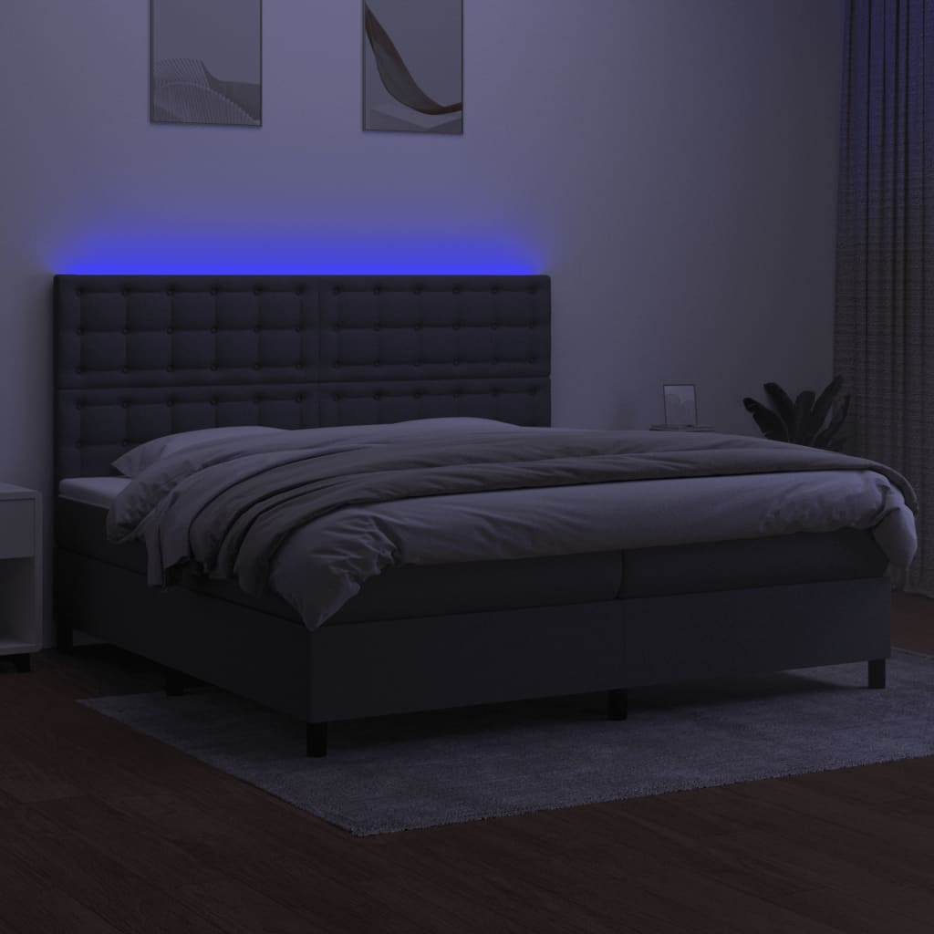 Nutze dieses Boxspringbett mit Matratze und LED für einen erholsamen Schlaf! Es wird der Mittelpunkt deines Schlafzimmers. Strapazierfähiger Stoff: Der Stoff weist eine schlichte und saubere Optik auf und ist außerdem atmungsaktiv und langlebig.Praktisches Kopfteil: Das Bett-Kopfteil ist nach Belieben höhenverstellbar. Es ist eine hervorragende Rückenlehne, während du im Bett sitzt, liest oder fern siehst.Bunter LED-Streifen: Die farbenfrohen LED-Leuchten erzeugen Verspieltheit in der Dunkelheit!Taschenfederkernmatratze: Die eingebaute Einzeltaschenfederkernmatratze zeichnet sich durch sehr hohe Qualität aus und gewährleistet gleichzeitig eine hohe Strapazierfähigkeit und Anpassungsfähigkeit. Sie absorbiert effektiv die durch das Werfen und Drehen verursachten Geräusche und Stöße.Hautfreundliche Matratzenauflage: Der Matratzenschoner ist mit einem strapazierfähigen sowie hautfreundlichen Stoffbezug versehen und fühlt sich daher weich und angenehm an. Hinweis:Aus hygienischen Gründen kann die Matratze nicht zurückgegeben werden, wenn die Verpackung entfernt oder geöffnet wurde.Nur der Teil mit dem Symbol kann geschnitten werden und nur der Teil mit dem USB funktioniert auch weiterhin.Jedes Produkt wird mit einer Montageanleitung in der Verpackung für einen einfachen Zusammenbau geliefert.Das Produkt verfügt über einen USB-Anschluss, aber die zertifizierte 5-V-USB-Stromquelle ist nicht im Lieferumfang enthalten.