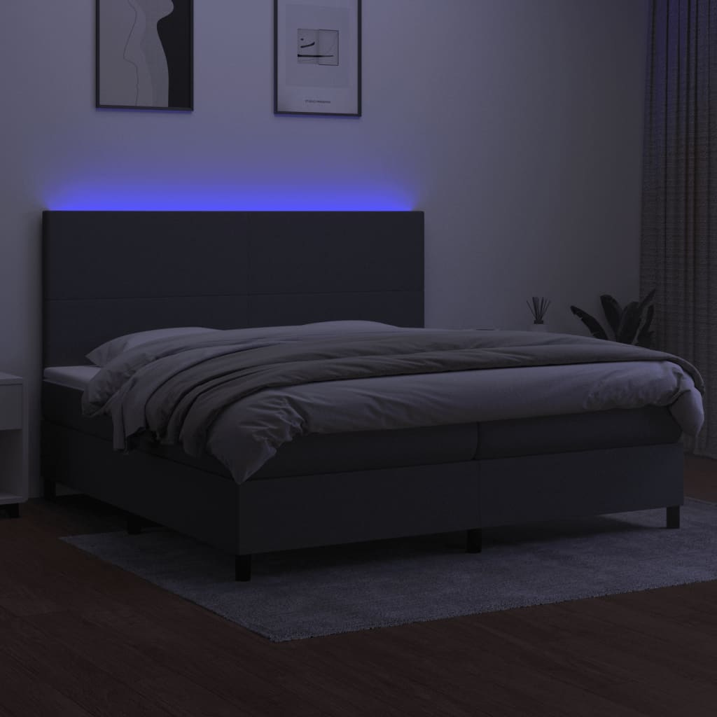 Nutze dieses Boxspringbett mit Matratze und LED für einen erholsamen Schlaf! Es wird der Mittelpunkt deines Schlafzimmers. Strapazierfähiger Stoff: Der Stoff weist eine schlichte und saubere Optik auf und ist außerdem atmungsaktiv und langlebig.Praktisches Kopfteil: Das Bett-Kopfteil ist nach Belieben höhenverstellbar. Es ist eine hervorragende Rückenlehne, während du im Bett sitzt, liest oder fern siehst.Bunter LED-Streifen: Die farbenfrohen LED-Leuchten erzeugen Verspieltheit in der Dunkelheit!Taschenfederkernmatratze: Die eingebaute Einzeltaschenfederkernmatratze zeichnet sich durch sehr hohe Qualität aus und gewährleistet gleichzeitig eine hohe Strapazierfähigkeit und Anpassungsfähigkeit. Sie absorbiert effektiv die durch das Werfen und Drehen verursachten Geräusche und Stöße.Hautfreundliche Matratzenauflage: Der Matratzenschoner ist mit einem strapazierfähigen sowie hautfreundlichen Stoffbezug versehen und fühlt sich daher weich und angenehm an. Hinweis:Aus hygienischen Gründen kann die Matratze nicht zurückgegeben werden, wenn die Verpackung entfernt oder geöffnet wurde.Nur der Teil mit dem Symbol kann geschnitten werden und nur der Teil mit dem USB funktioniert auch weiterhin.Jedes Produkt wird mit einer Montageanleitung in der Verpackung für einen einfachen Zusammenbau geliefert.Das Produkt verfügt über einen USB-Anschluss, aber die zertifizierte 5-V-USB-Stromquelle ist nicht im Lieferumfang enthalten.