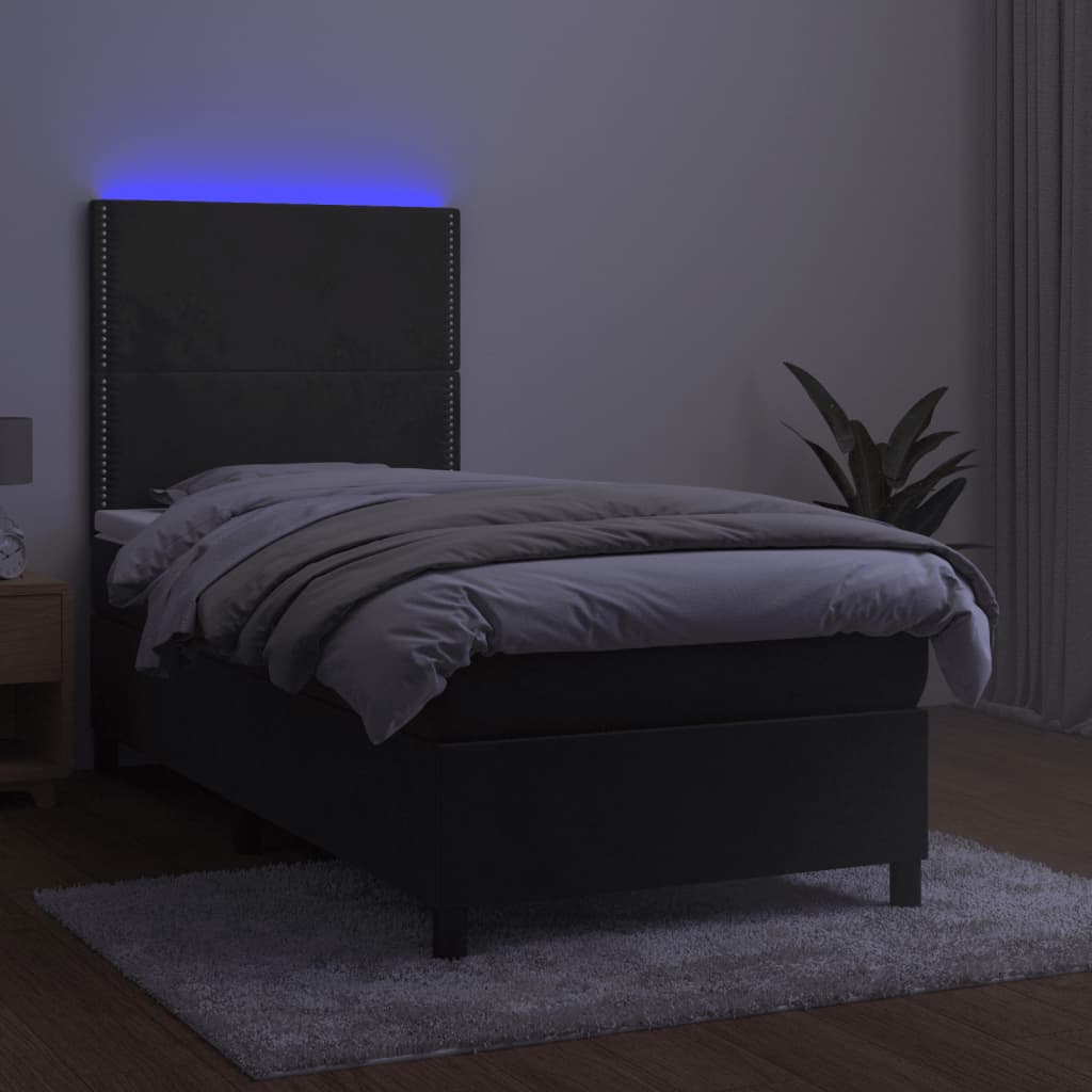 Nutze dieses Boxspringbett mit Matratze und LED für einen erholsamen Schlaf! Es wird der Mittelpunkt deines Schlafzimmers. Weicher Samt: Samt ist ein weicher, luxuriöser Stoff, der sich durch seinen dichten Flor aus gleichmäßig geschnittenen Fasern auszeichnet, die einen glatten Flor haben. Samt fühlt sich unverwechselbar weich an und ist angenehm zu berühren.Praktisches Kopfteil: Das Bett-Kopfteil ist nach Belieben höhenverstellbar. Es ist eine hervorragende Rückenlehne, während du im Bett sitzt, liest oder fern siehst.Bunter LED-Streifen: Die farbenfrohen LED-Leuchten erzeugen Verspieltheit in der Dunkelheit!Taschenfederkernmatratze: Die eingebaute Einzeltaschenfederkernmatratze zeichnet sich durch sehr hohe Qualität aus und gewährleistet gleichzeitig eine hohe Strapazierfähigkeit und Anpassungsfähigkeit. Sie absorbiert effektiv die durch das Werfen und Drehen verursachten Geräusche und Stöße.Hautfreundliche Matratzenauflage: Der Matratzenschoner ist mit einem strapazierfähigen sowie hautfreundlichen Stoffbezug versehen und fühlt sich daher weich und angenehm an. Hinweis:Aus hygienischen Gründen kann die Matratze nicht zurückgegeben werden, wenn die Verpackung entfernt oder geöffnet wurde.Nur der Teil mit dem Symbol kann geschnitten werden und nur der Teil mit dem USB funktioniert auch weiterhin.Jedes Produkt wird mit einer Montageanleitung in der Verpackung für einen einfachen Zusammenbau geliefert.Das Produkt verfügt über einen USB-Anschluss, aber die zertifizierte 5-V-USB-Stromquelle ist nicht im Lieferumfang enthalten.