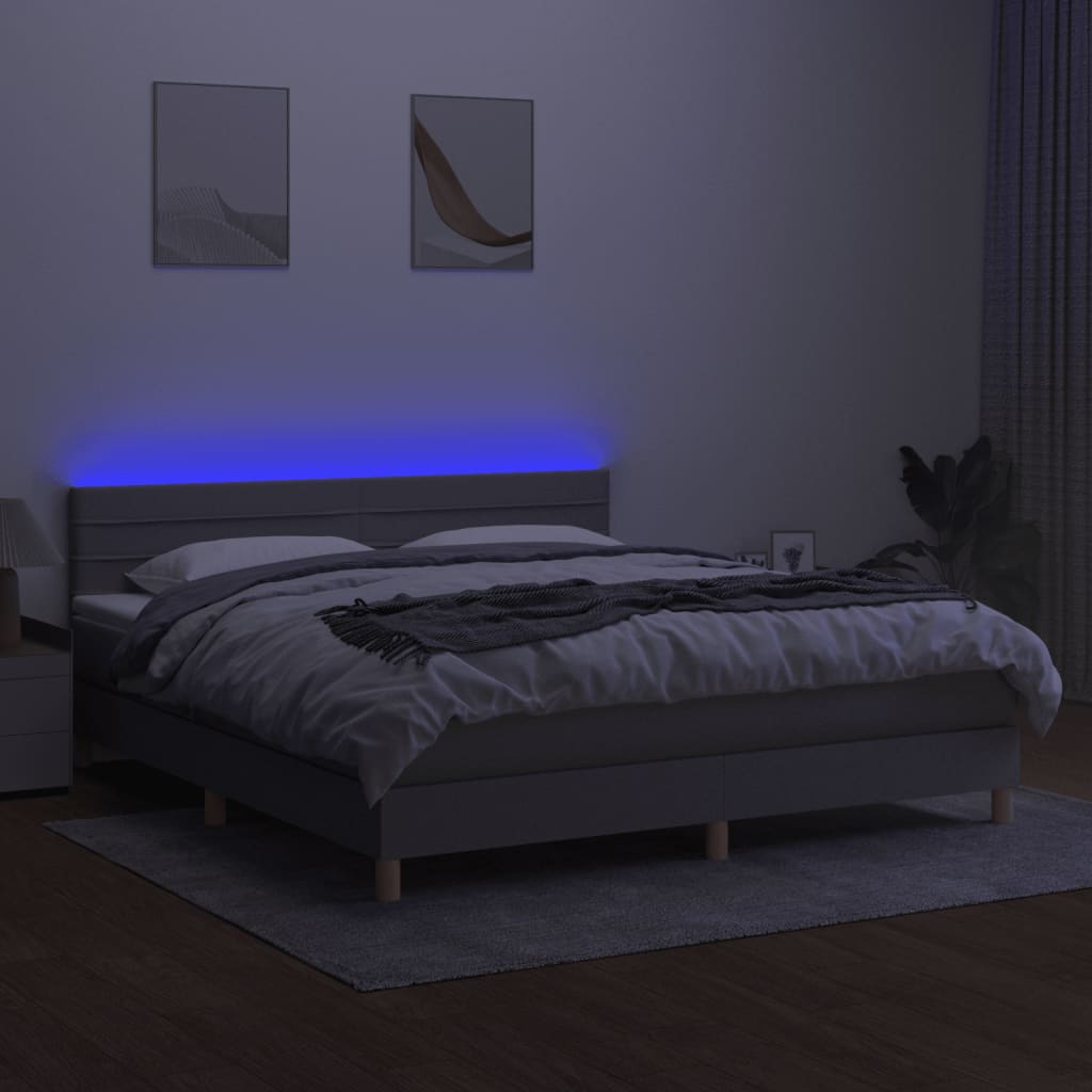Nutze dieses Boxspringbett mit Matratze und LED für einen erholsamen Schlaf! Es wird der Mittelpunkt deines Schlafzimmers. Strapazierfähiger Stoff: Der Stoff weist eine schlichte und saubere Optik auf und ist außerdem atmungsaktiv und langlebig.Praktisches Kopfteil: Das Bett-Kopfteil ist nach Belieben höhenverstellbar. Es ist eine hervorragende Rückenlehne, während du im Bett sitzt, liest oder fern siehst.Bunter LED-Streifen: Die farbenfrohen LED-Leuchten erzeugen Verspieltheit in der Dunkelheit!Taschenfederkernmatratze: Die eingebaute Einzeltaschenfederkernmatratze zeichnet sich durch sehr hohe Qualität aus und gewährleistet gleichzeitig eine hohe Strapazierfähigkeit und Anpassungsfähigkeit. Sie absorbiert effektiv die durch das Werfen und Drehen verursachten Geräusche und Stöße.Hautfreundliche Matratzenauflage: Der Matratzenschoner ist mit einem strapazierfähigen sowie hautfreundlichen Stoffbezug versehen und fühlt sich daher weich und angenehm an. Hinweis:Aus hygienischen Gründen kann die Matratze nicht zurückgegeben werden, wenn die Verpackung entfernt oder geöffnet wurde.Jedes Produkt wird mit einer Montageanleitung in der Verpackung für einen einfachen Zusammenbau geliefert.Nur der Teil mit dem Symbol kann geschnitten werden und nur der Teil mit dem USB funktioniert auch weiterhin.Das Produkt verfügt über einen USB-Anschluss, aber die zertifizierte 5-V-USB-Stromquelle ist nicht im Lieferumfang enthalten.