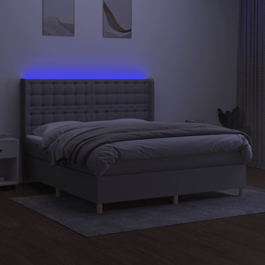 Nutze dieses Boxspringbett mit Matratze und LED für einen erholsamen Schlaf! Es wird der Mittelpunkt deines Schlafzimmers. Strapazierfähiger Stoff: Der Stoff weist eine schlichte und saubere Optik auf und ist außerdem atmungsaktiv und langlebig.Praktisches Kopfteil: Das Bett-Kopfteil ist nach Belieben höhenverstellbar. Es ist eine hervorragende Rückenlehne, während du im Bett sitzt, liest oder fern siehst.Bunter LED-Streifen: Die farbenfrohen LED-Leuchten erzeugen Verspieltheit in der Dunkelheit!Taschenfederkernmatratze: Die eingebaute Einzeltaschenfederkernmatratze zeichnet sich durch sehr hohe Qualität aus und gewährleistet gleichzeitig eine hohe Strapazierfähigkeit und Anpassungsfähigkeit. Sie absorbiert effektiv die durch das Werfen und Drehen verursachten Geräusche und Stöße.Hautfreundliche Matratzenauflage: Der Matratzenschoner ist mit einem strapazierfähigen sowie hautfreundlichen Stoffbezug versehen und fühlt sich daher weich und angenehm an. Hinweis:Aus hygienischen Gründen kann die Matratze nicht zurückgegeben werden, wenn die Verpackung entfernt oder geöffnet wurde.Nur der Teil mit dem Symbol kann geschnitten werden und nur der Teil mit dem USB funktioniert auch weiterhin.Jedes Produkt wird mit einer Montageanleitung in der Verpackung für einen einfachen Zusammenbau geliefert.Das Produkt verfügt über einen USB-Anschluss, aber die zertifizierte 5-V-USB-Stromquelle ist nicht im Lieferumfang enthalten.
